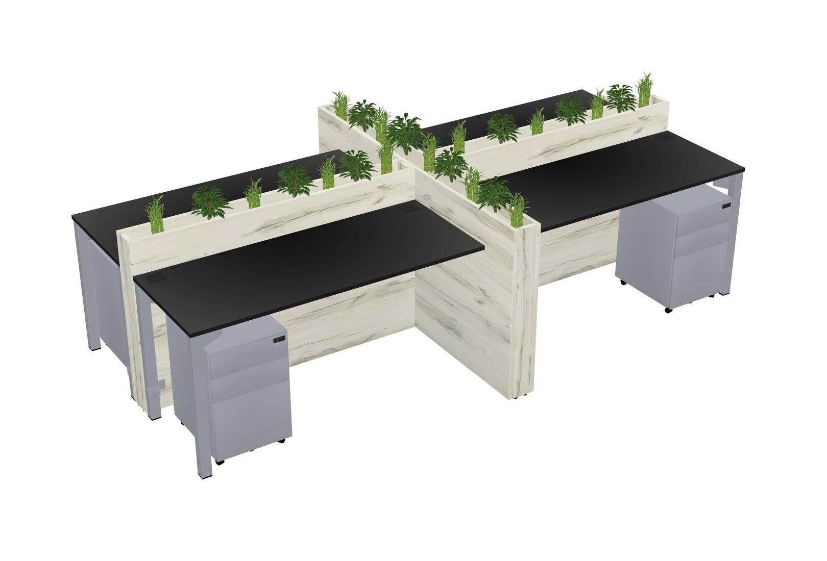 Black Rectangular Shared Office Desk For 4 Persons Let Nature Help Flourish Your Productivity The Base Comes With An Adjustable Shelf To Provide Space For Pots (Pots & Plants Sold Separately)