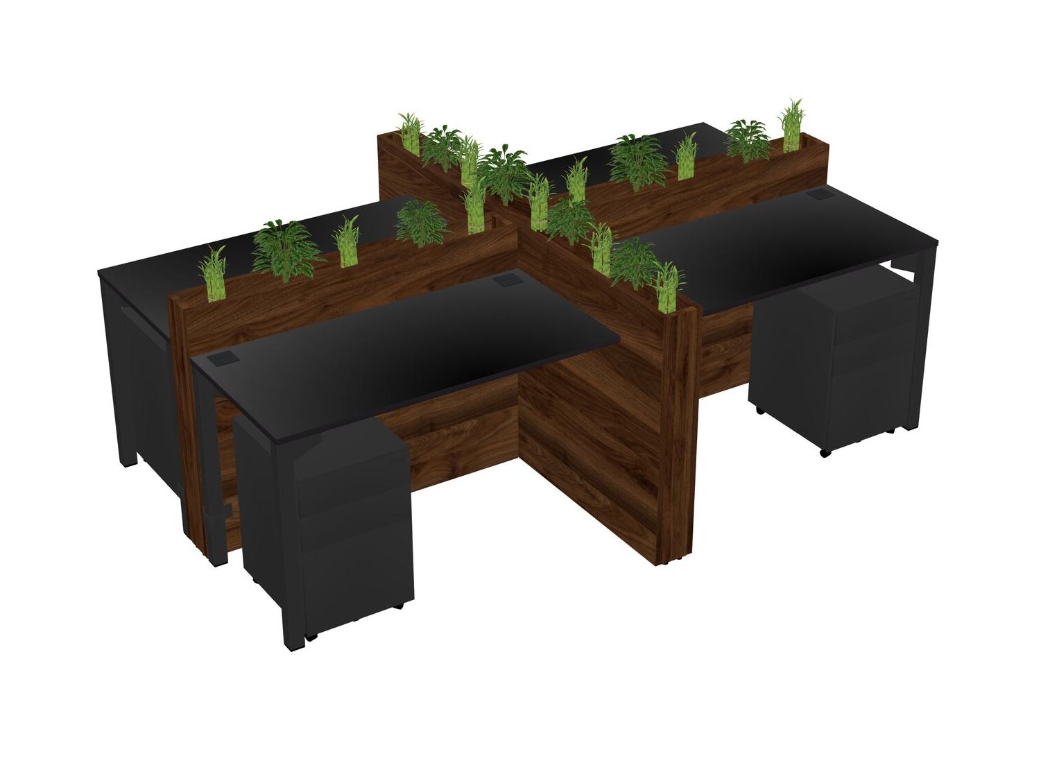 Black Rectangular Shared Office Desk For 4 Persons Let Nature Help Flourish Your Productivity The Base Comes With An Adjustable Shelf To Provide Space For Pots (Pots & Plants Sold Separately)
