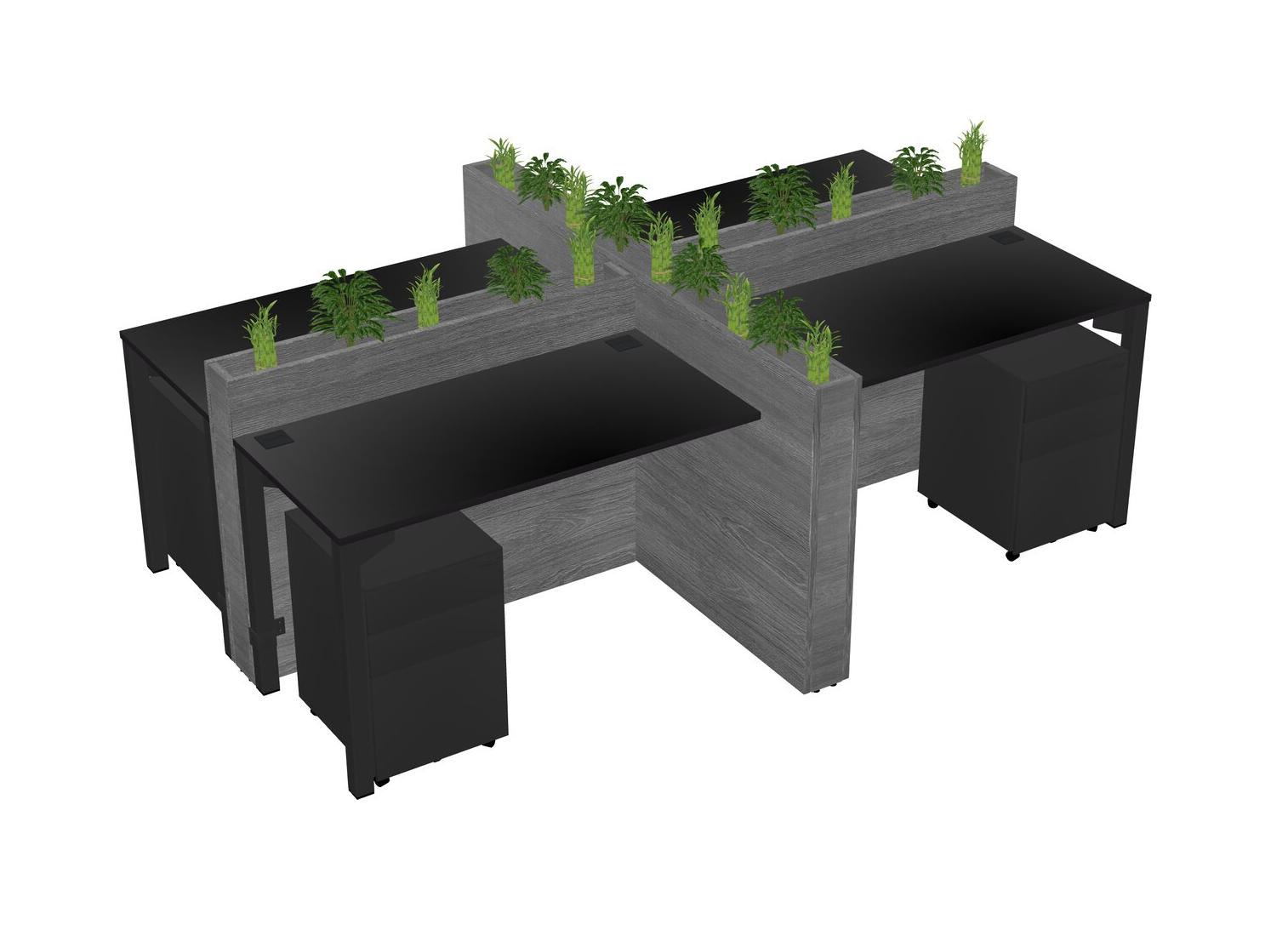 Black Rectangular Shared Office Desk For 4 Persons Let Nature Help Flourish Your Productivity The Base Comes With An Adjustable Shelf To Provide Space For Pots (Pots & Plants Sold Separately)