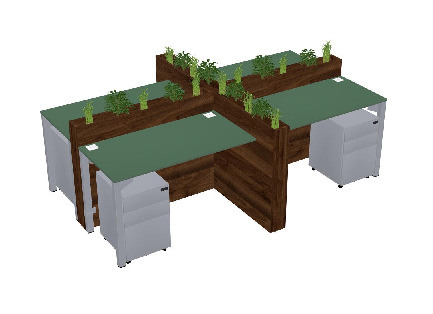 Green Rectangular Shared Office Desk For 4 Persons Let Nature Help Flourish Your Productivity The Base Comes With An Adjustable Shelf To Provide Space For Pots (Pots & Plants Sold Separately)