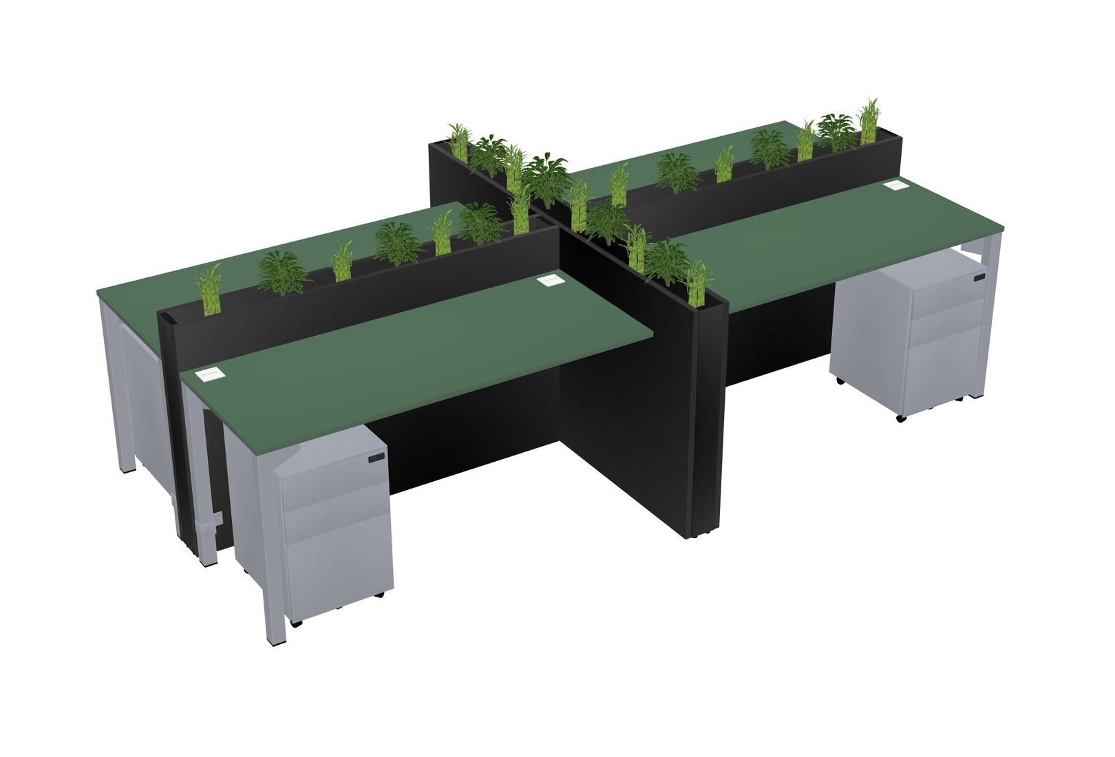 Green Rectangular Shared Office Desk For 4 Persons Let Nature Help Flourish Your Productivity The Base Comes With An Adjustable Shelf To Provide Space For Pots (Pots & Plants Sold Separately)