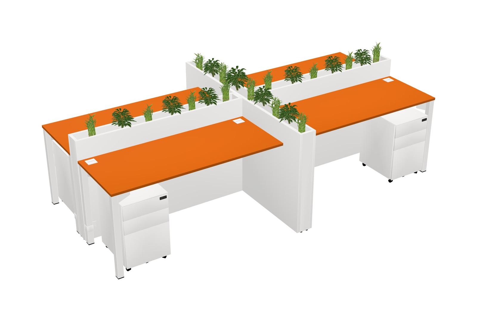 Orange Rectangular Shared Office Desk For 4 Persons Let Nature Help Flourish Your Productivity The Base Comes With An Adjustable Shelf To Provide Space For Pots (Pots & Plants Sold Separately)