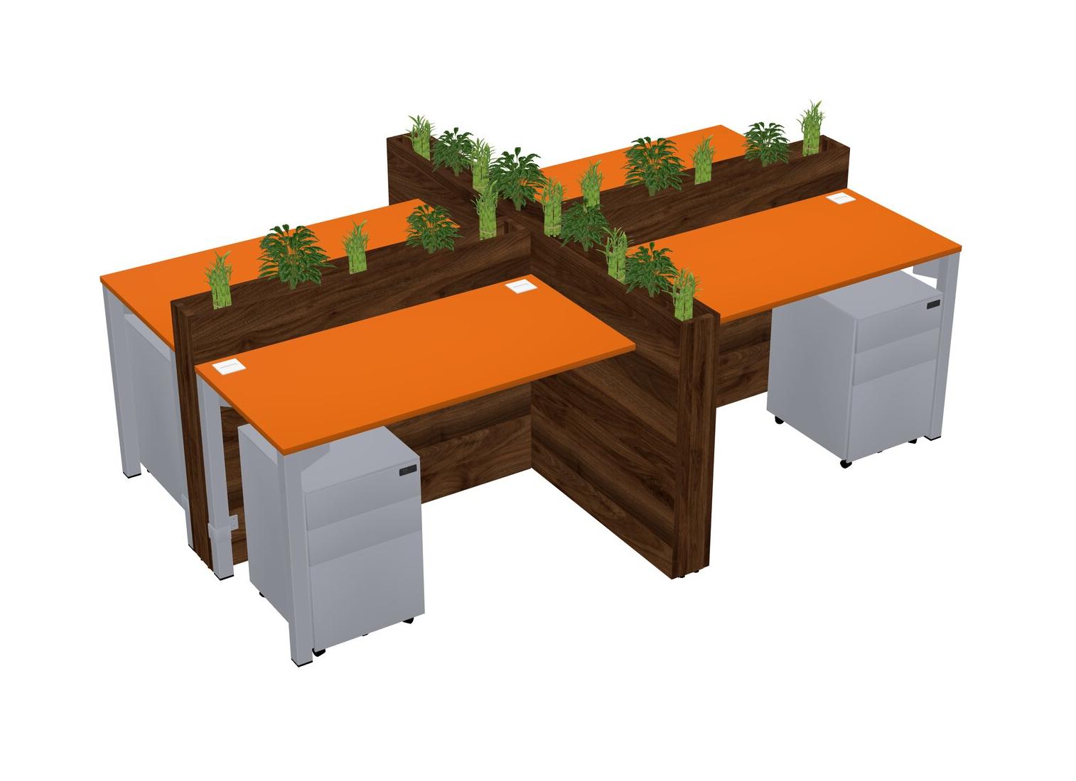 Orange Rectangular Shared Office Desk For 4 Persons Let Nature Help Flourish Your Productivity The Base Comes With An Adjustable Shelf To Provide Space For Pots (Pots & Plants Sold Separately)