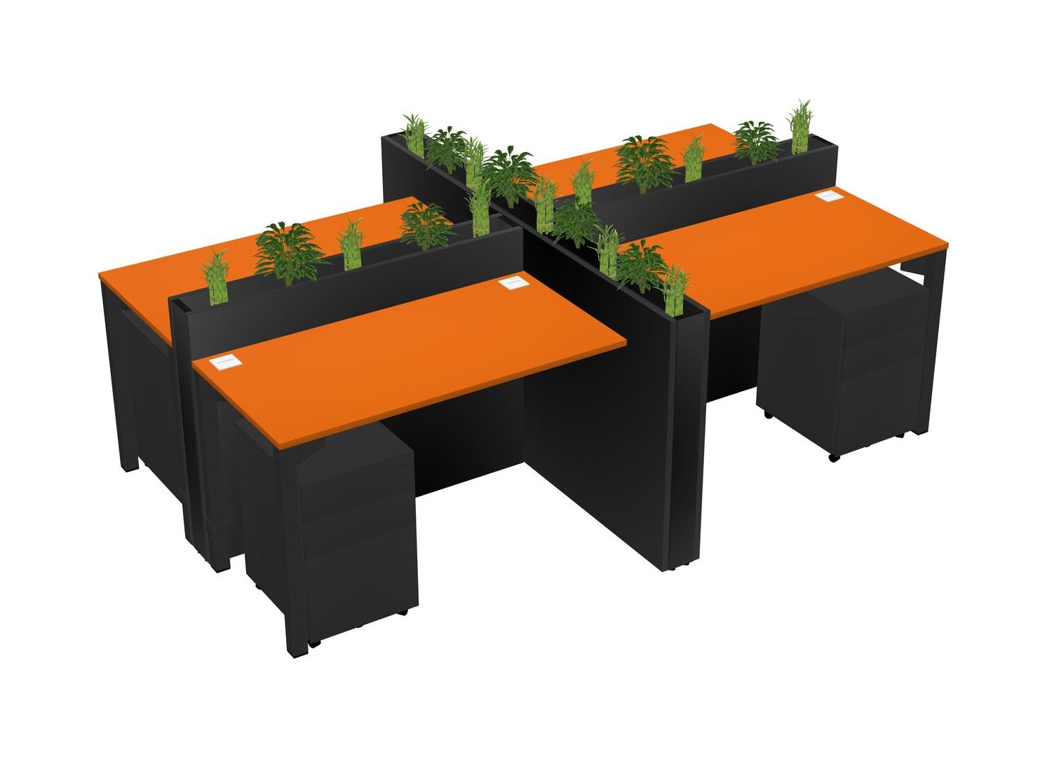 Orange Rectangular Shared Office Desk For 4 Persons Let Nature Help Flourish Your Productivity The Base Comes With An Adjustable Shelf To Provide Space For Pots (Pots & Plants Sold Separately)