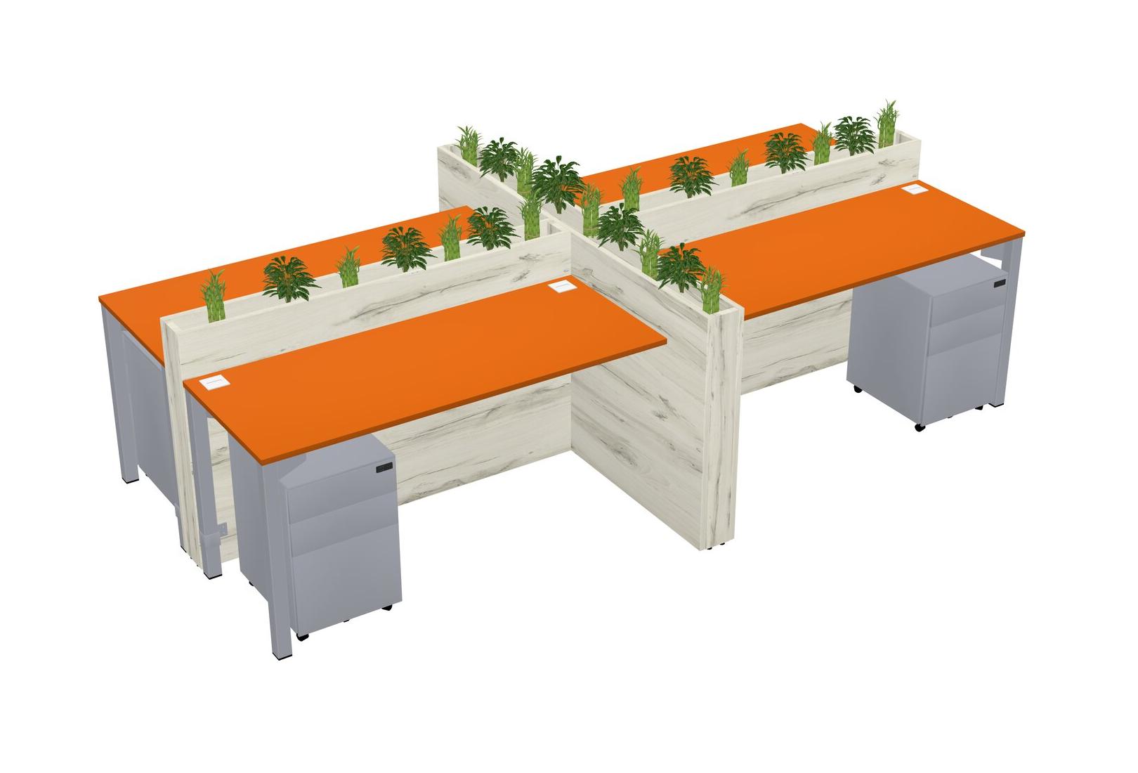 Orange Rectangular Shared Office Desk For 4 Persons Let Nature Help Flourish Your Productivity The Base Comes With An Adjustable Shelf To Provide Space For Pots (Pots & Plants Sold Separately)