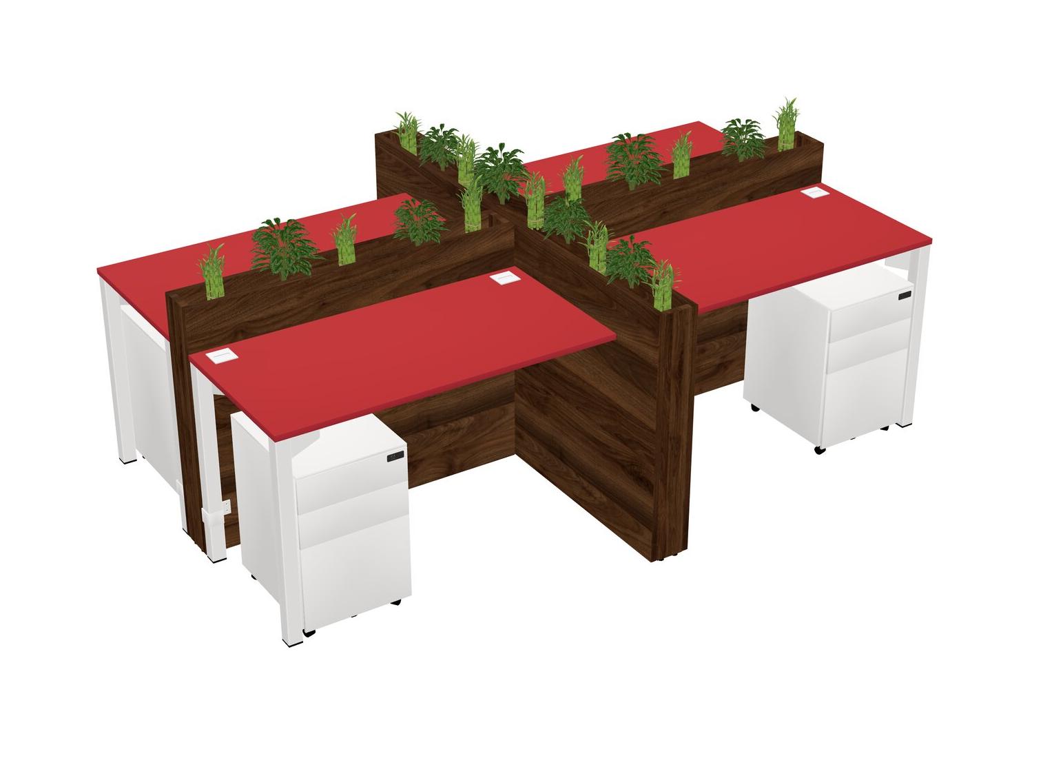 Prism Red Rectangular Shared Office Desk For 4 Persons Let Nature Help Flourish Your Productivity The Base Comes With An Adjustable Shelf To Provide Space For Pots (Pots & Plants Sold Separately)