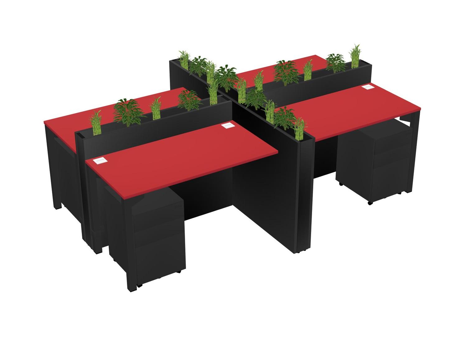 Prism Red Rectangular Shared Office Desk For 4 Persons Let Nature Help Flourish Your Productivity The Base Comes With An Adjustable Shelf To Provide Space For Pots (Pots & Plants Sold Separately)