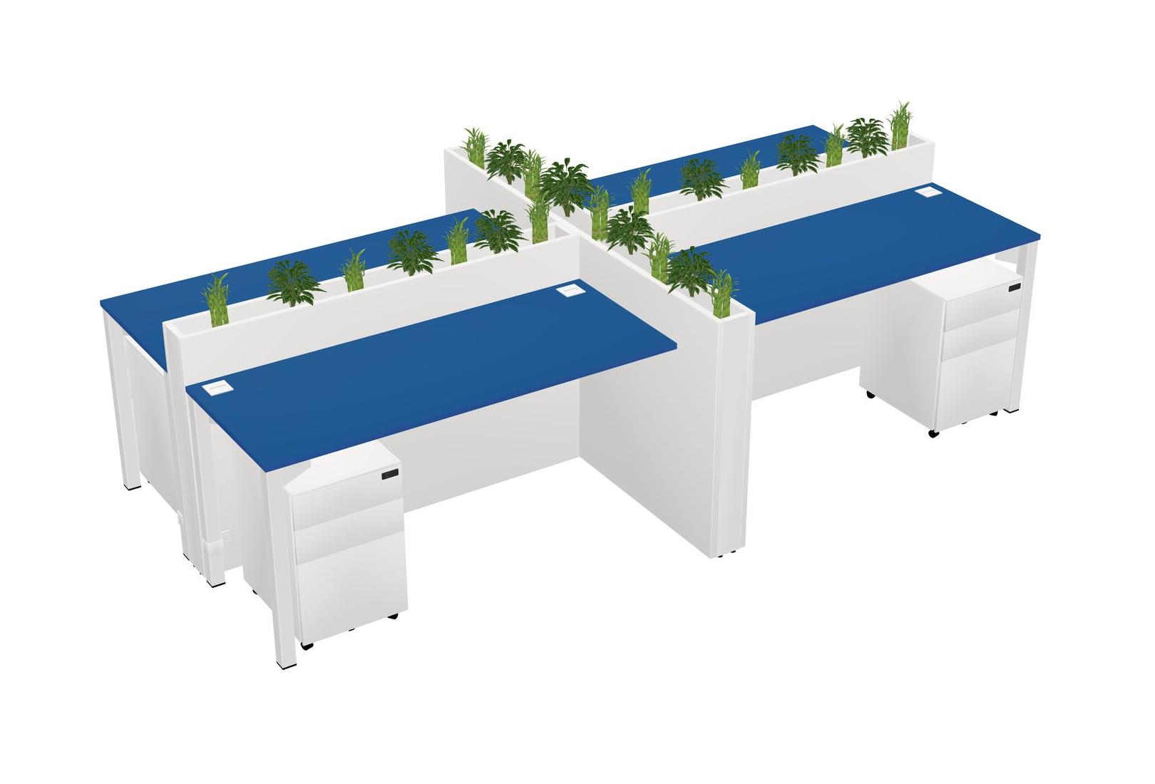 Prism Blue Rectangular Shared Office Desk For 4 Persons Let Nature Help Flourish Your Productivity The Base Comes With An Adjustable Shelf To Provide Space For Pots (Pots & Plants Sold Separately)