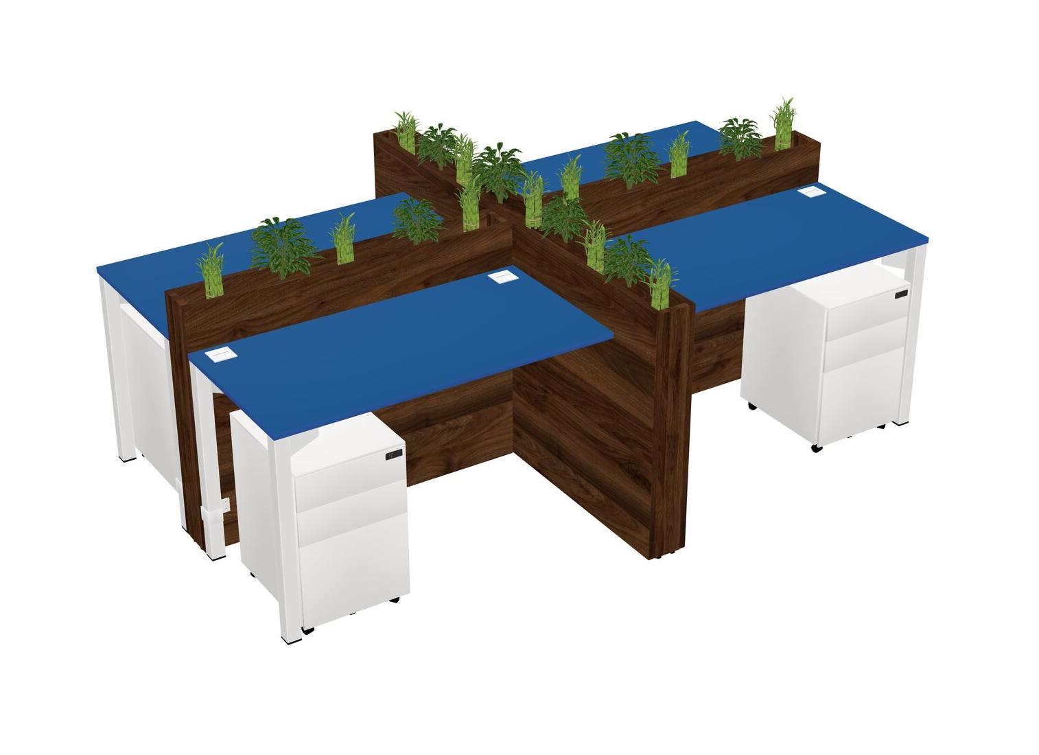 Prism Blue Rectangular Shared Office Desk For 4 Persons Let Nature Help Flourish Your Productivity The Base Comes With An Adjustable Shelf To Provide Space For Pots (Pots & Plants Sold Separately)