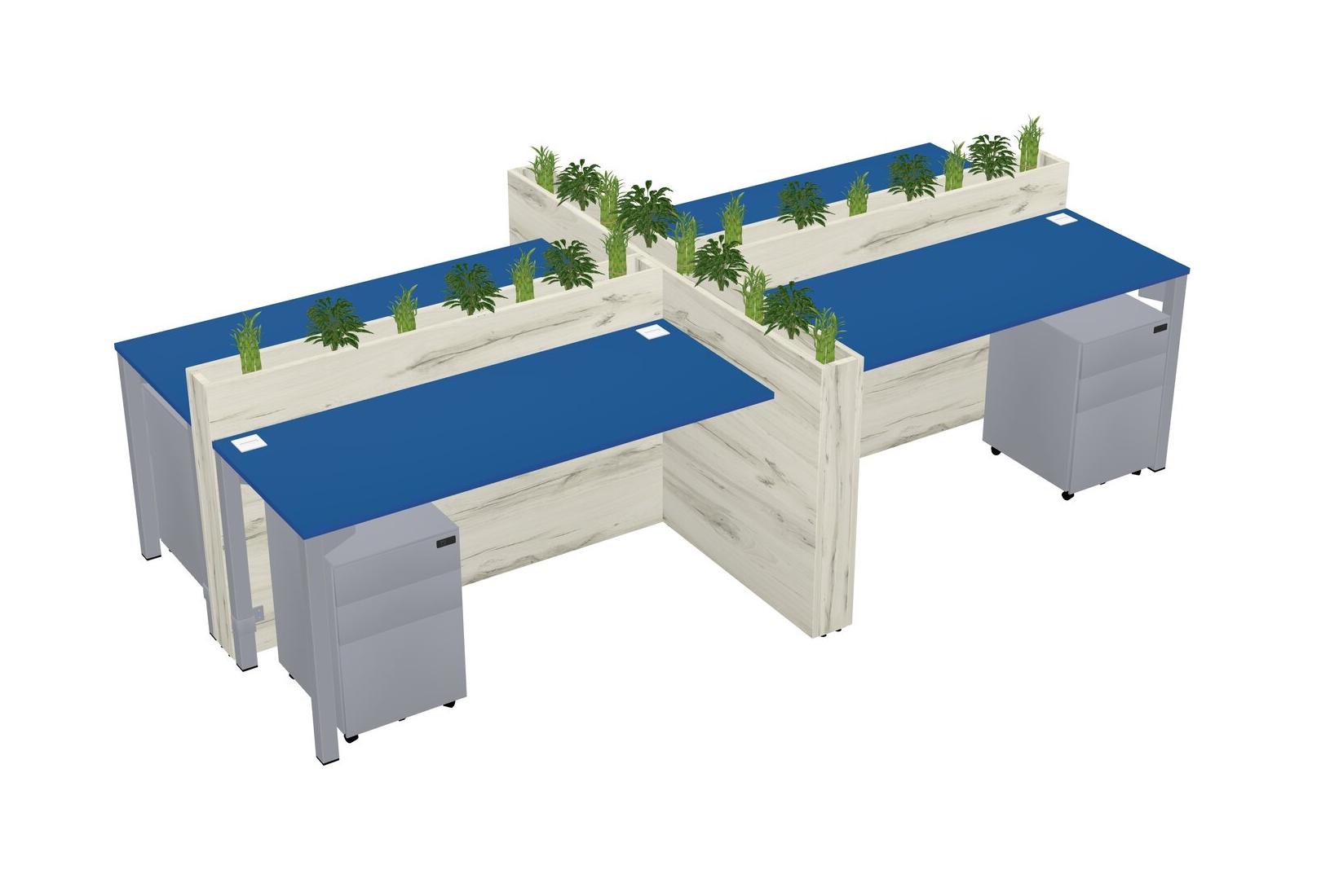 Prism Blue Rectangular Shared Office Desk For 4 Persons Let Nature Help Flourish Your Productivity The Base Comes With An Adjustable Shelf To Provide Space For Pots (Pots & Plants Sold Separately)