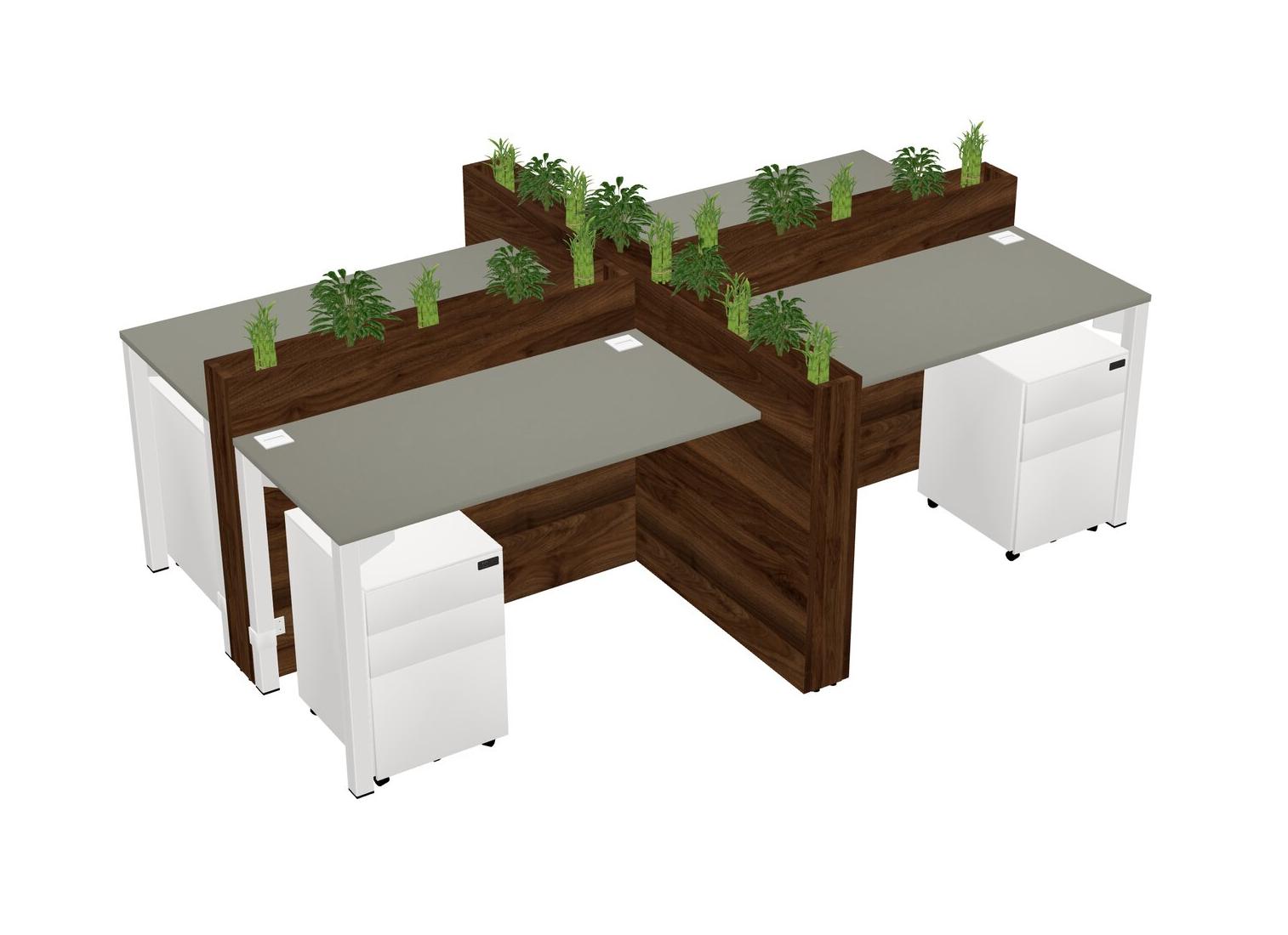 Grey Shadows Rectangular Shared Office Desk For 4 Persons Let Nature Help Flourish Your Productivity The Base Comes With An Adjustable Shelf To Provide Space For Pots (Pots & Plants Sold Separately)