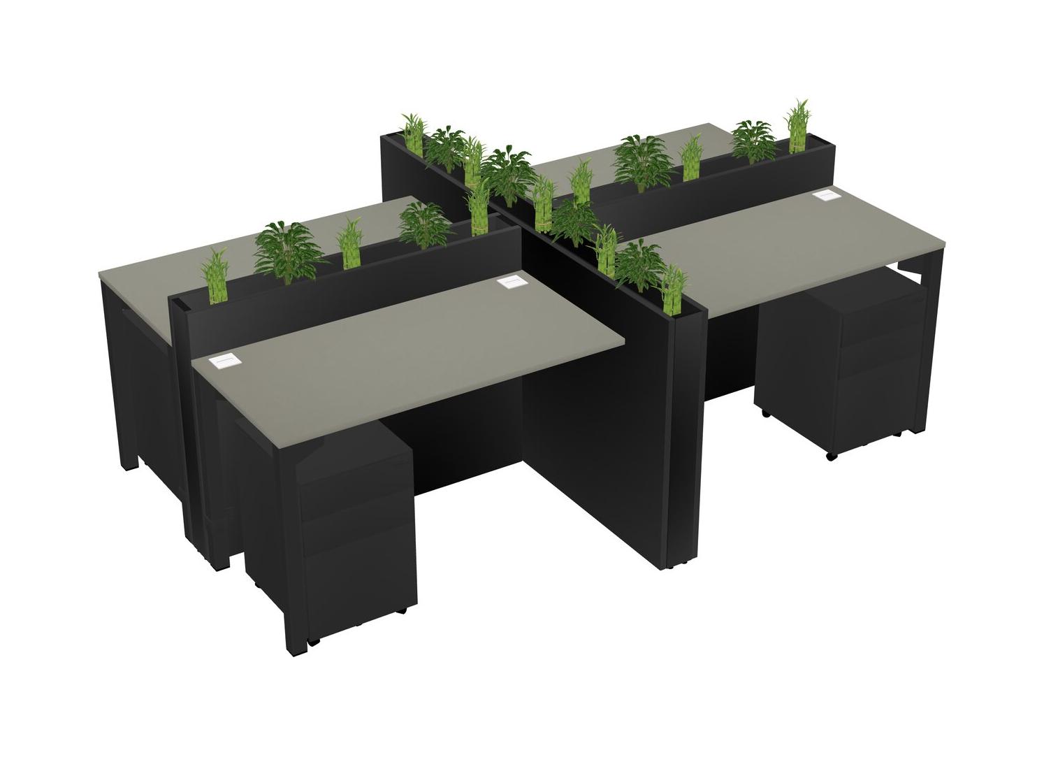 Grey Shadows Rectangular Shared Office Desk For 4 Persons Let Nature Help Flourish Your Productivity The Base Comes With An Adjustable Shelf To Provide Space For Pots (Pots & Plants Sold Separately)