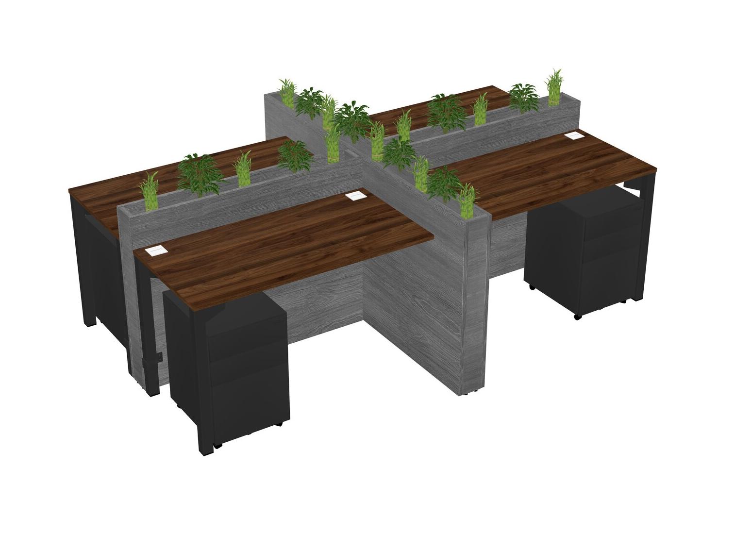 Columbia Walnut Rectangular Shared Office Desk For 4 Persons Let Nature Help Flourish Your Productivity The Base Comes With An Adjustable Shelf To Provide Space For Pots (Pots & Plants Sold Separately)