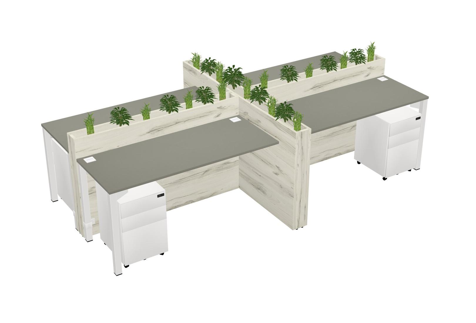 Grey Shadows Rectangular Shared Office Desk For 4 Persons Let Nature Help Flourish Your Productivity The Base Comes With An Adjustable Shelf To Provide Space For Pots (Pots & Plants Sold Separately)