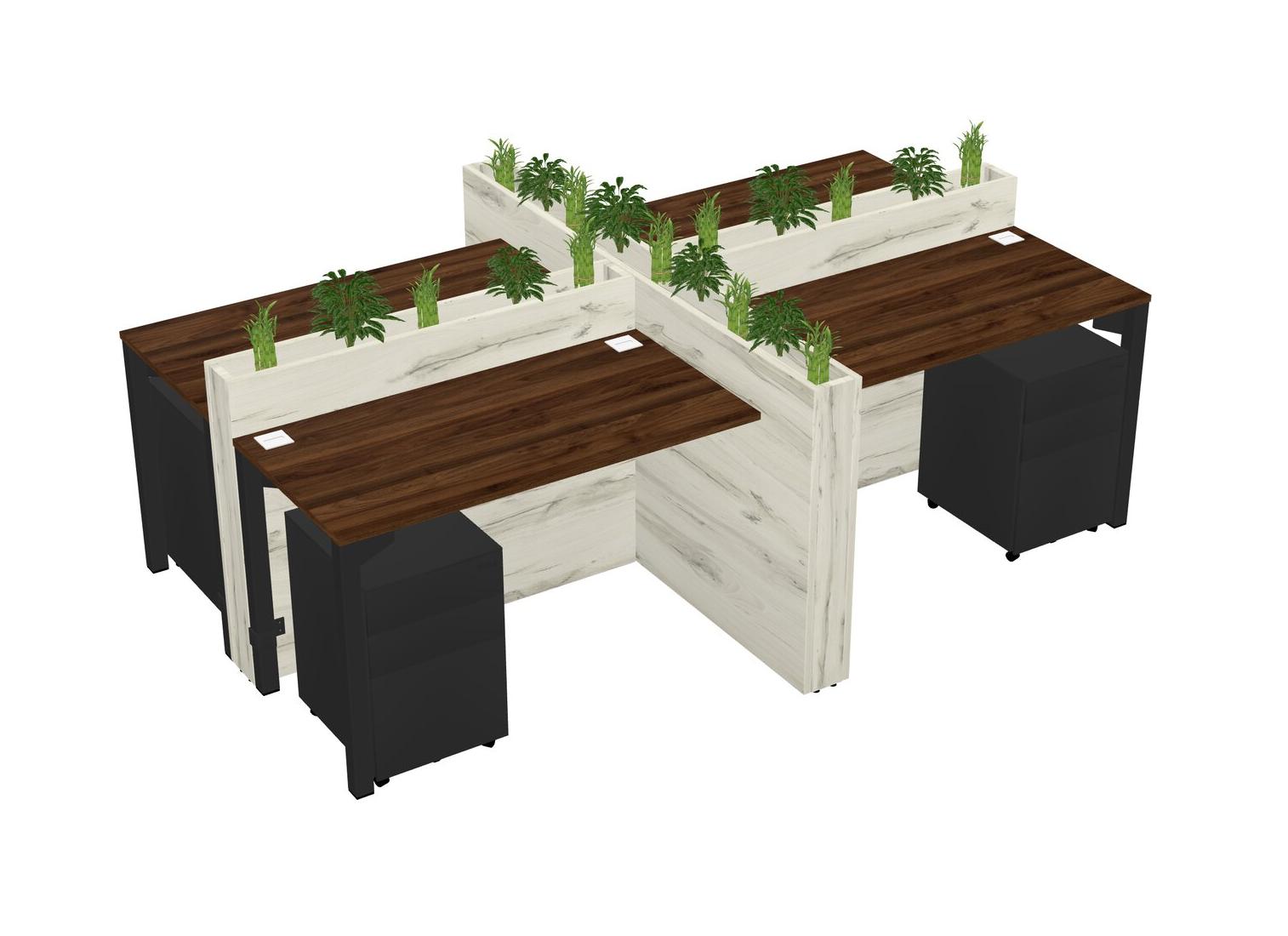 Columbia Walnut Rectangular Shared Office Desk For 4 Persons Let Nature Help Flourish Your Productivity The Base Comes With An Adjustable Shelf To Provide Space For Pots (Pots & Plants Sold Separately)