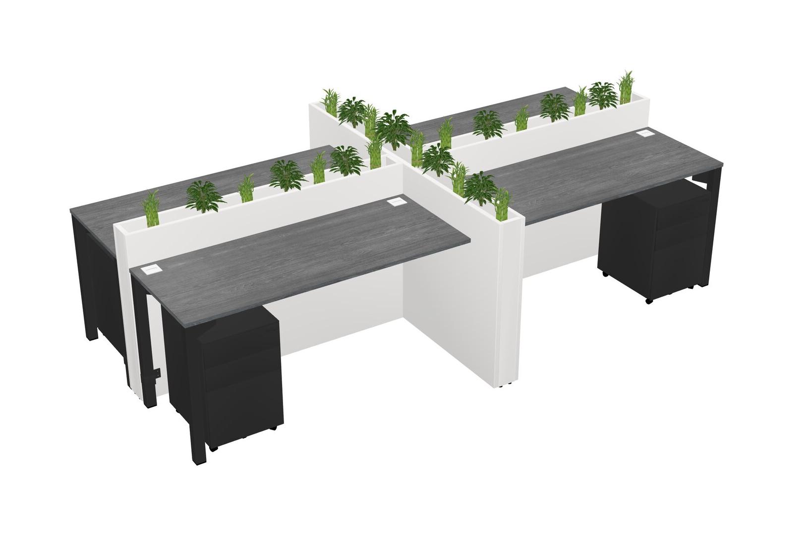 Grey Rectangular Shared Office Desk For 4 Persons Let Nature Help Flourish Your Productivity The Base Comes With An Adjustable Shelf To Provide Space For Pots (Pots & Plants Sold Separately)