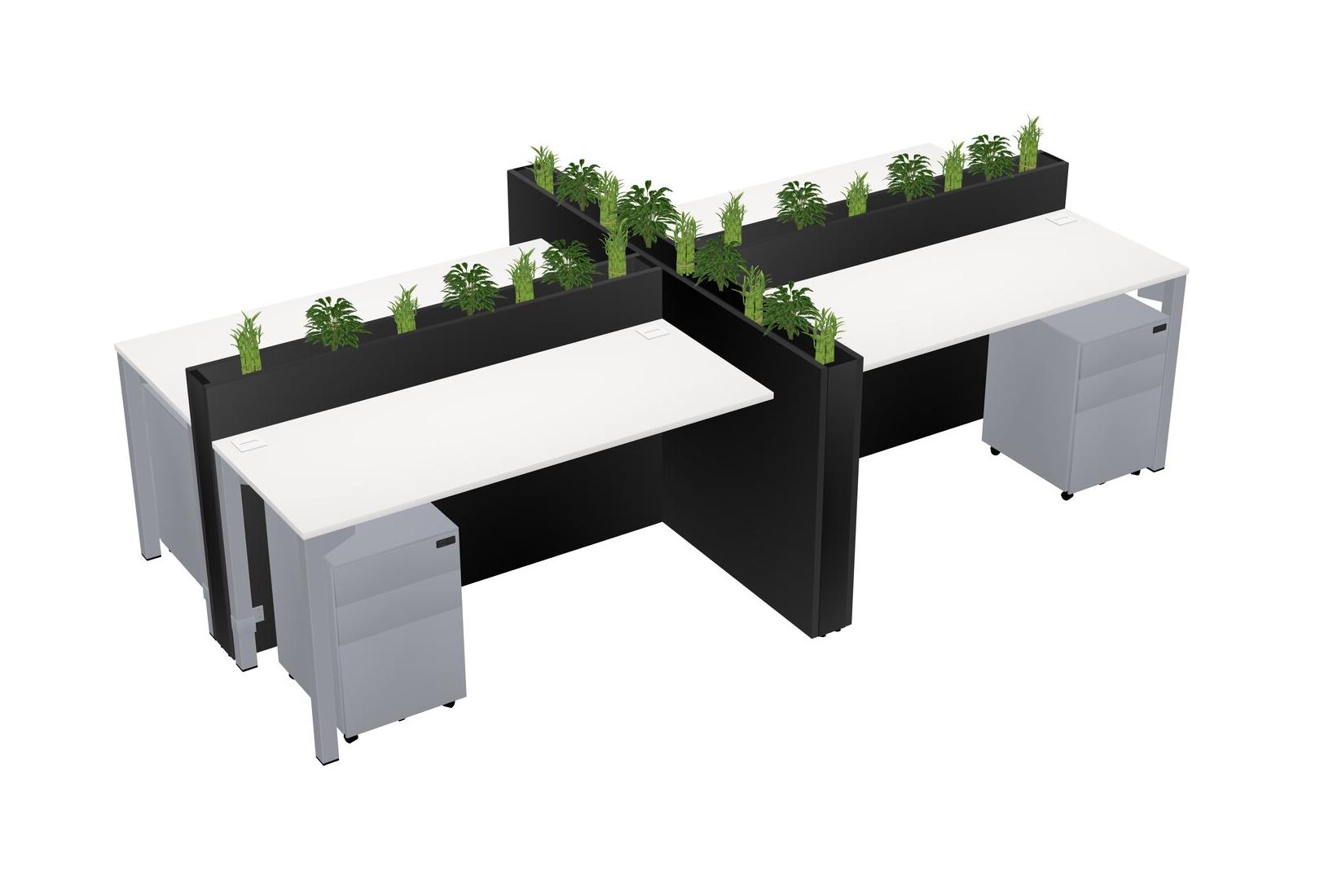 White Rectangular Shared Office Desk For 4 Persons Let Nature Help Flourish Your Productivity The Base Comes With An Adjustable Shelf To Provide Space For Pots (Pots & Plants Sold Separately)