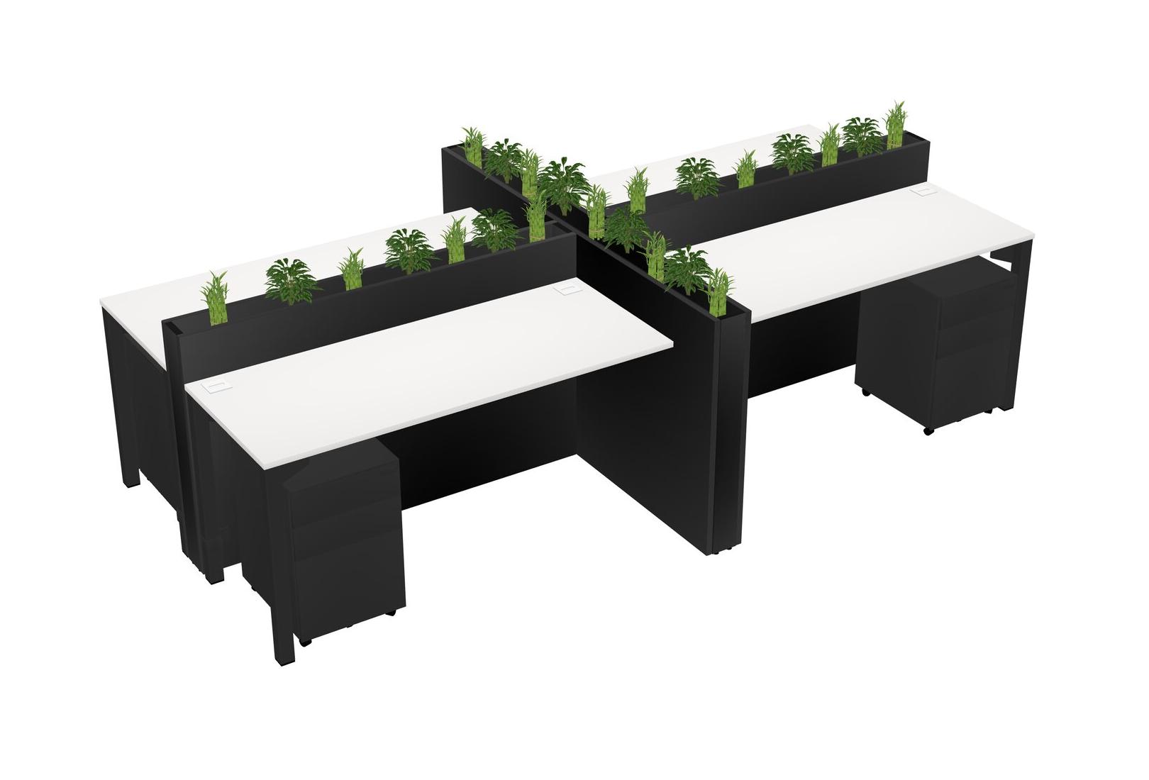 White Rectangular Shared Office Desk For 4 Persons Let Nature Help Flourish Your Productivity The Base Comes With An Adjustable Shelf To Provide Space For Pots (Pots & Plants Sold Separately)