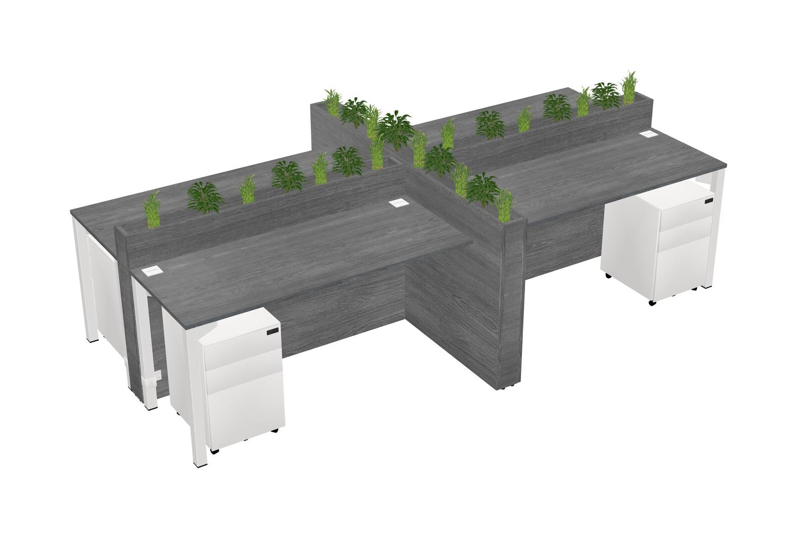 Grey Rectangular Shared Office Desk For 4 Persons Let Nature Help Flourish Your Productivity The Base Comes With An Adjustable Shelf To Provide Space For Pots (Pots & Plants Sold Separately)