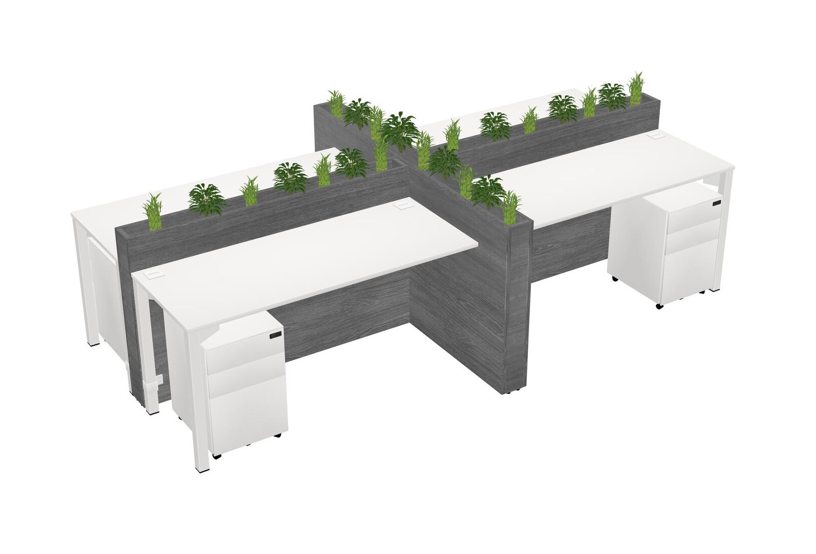 White Rectangular Shared Office Desk For 4 Persons Let Nature Help Flourish Your Productivity The Base Comes With An Adjustable Shelf To Provide Space For Pots (Pots & Plants Sold Separately)