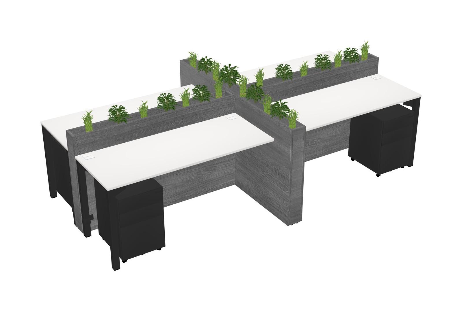 White Rectangular Shared Office Desk For 4 Persons Let Nature Help Flourish Your Productivity The Base Comes With An Adjustable Shelf To Provide Space For Pots (Pots & Plants Sold Separately)
