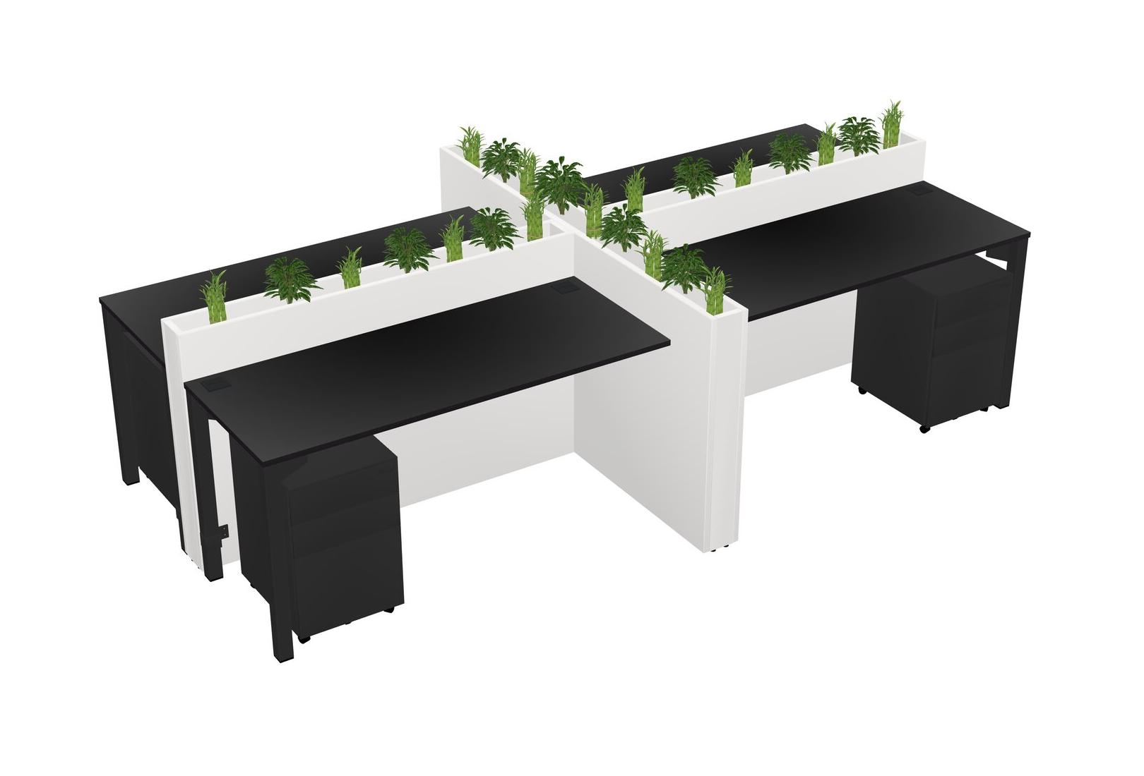 Black Rectangular Shared Office Desk For 4 Persons Let Nature Help Flourish Your Productivity The Base Comes With An Adjustable Shelf To Provide Space For Pots (Pots & Plants Sold Separately)