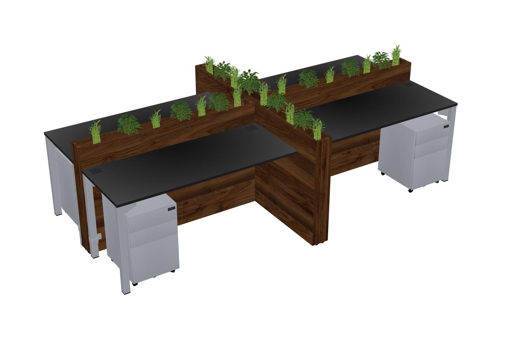 Black Rectangular Shared Office Desk For 4 Persons Let Nature Help Flourish Your Productivity The Base Comes With An Adjustable Shelf To Provide Space For Pots (Pots & Plants Sold Separately)