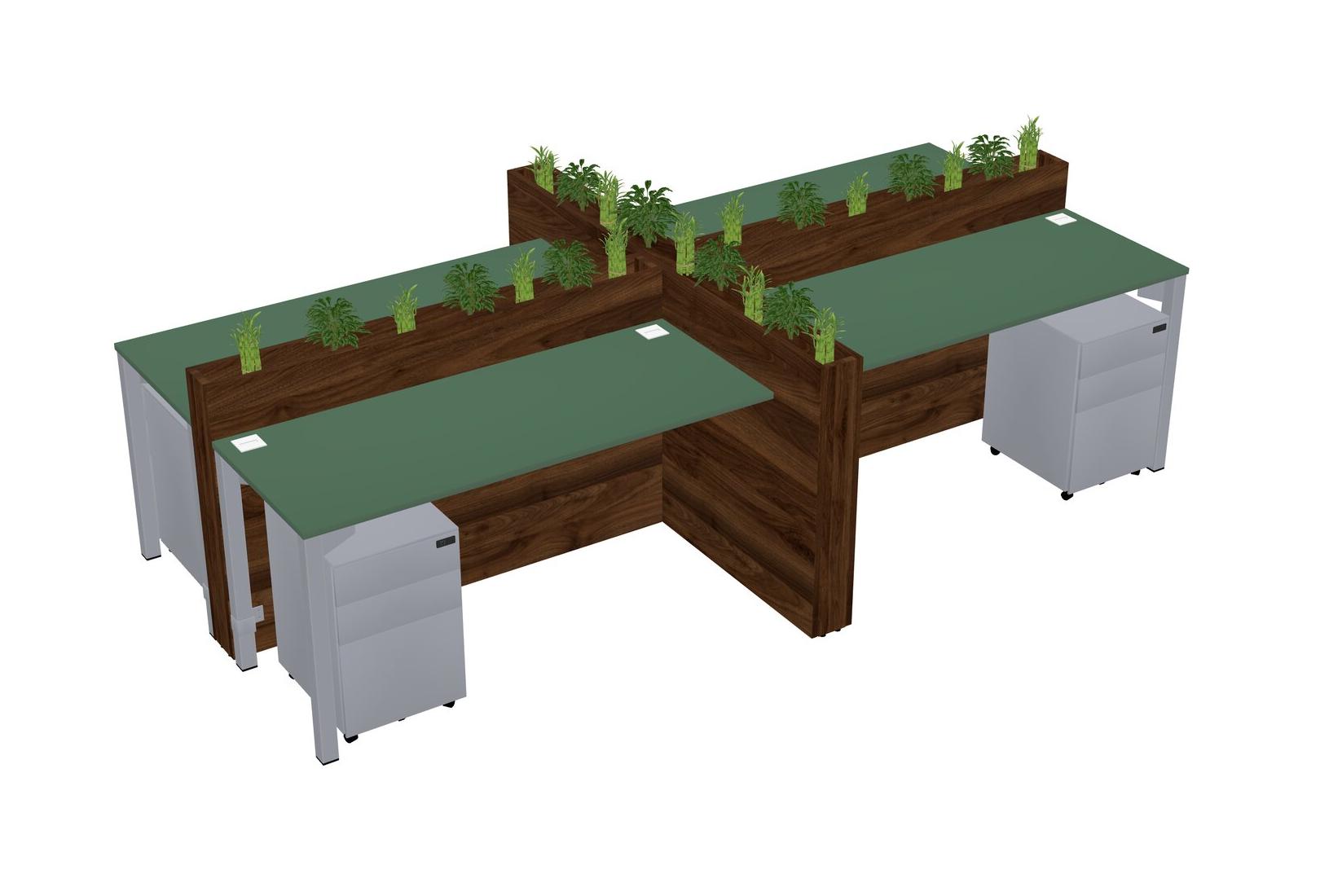 Green Rectangular Shared Office Desk For 4 Persons Let Nature Help Flourish Your Productivity The Base Comes With An Adjustable Shelf To Provide Space For Pots (Pots & Plants Sold Separately)