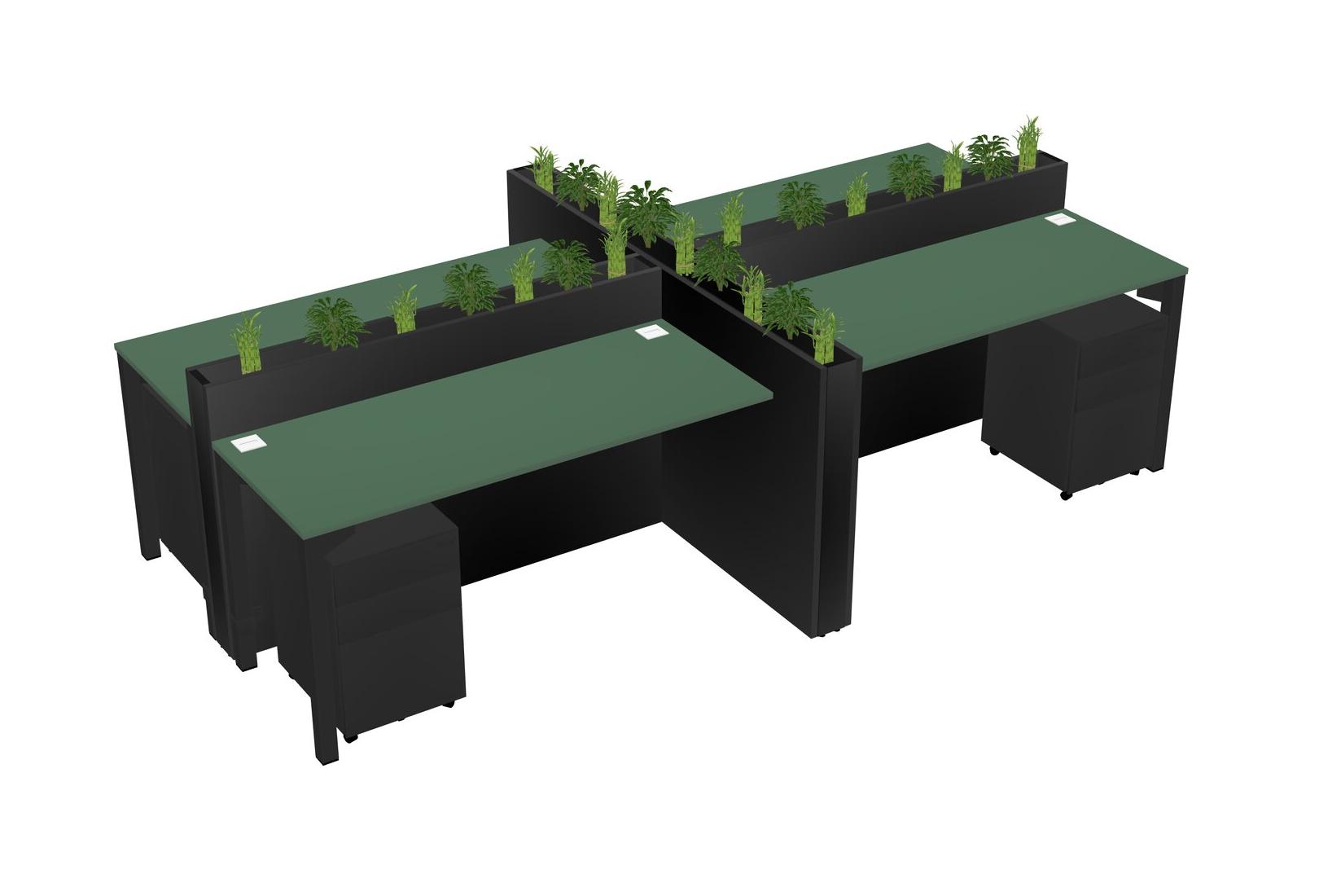 Green Rectangular Shared Office Desk For 4 Persons Let Nature Help Flourish Your Productivity The Base Comes With An Adjustable Shelf To Provide Space For Pots (Pots & Plants Sold Separately)