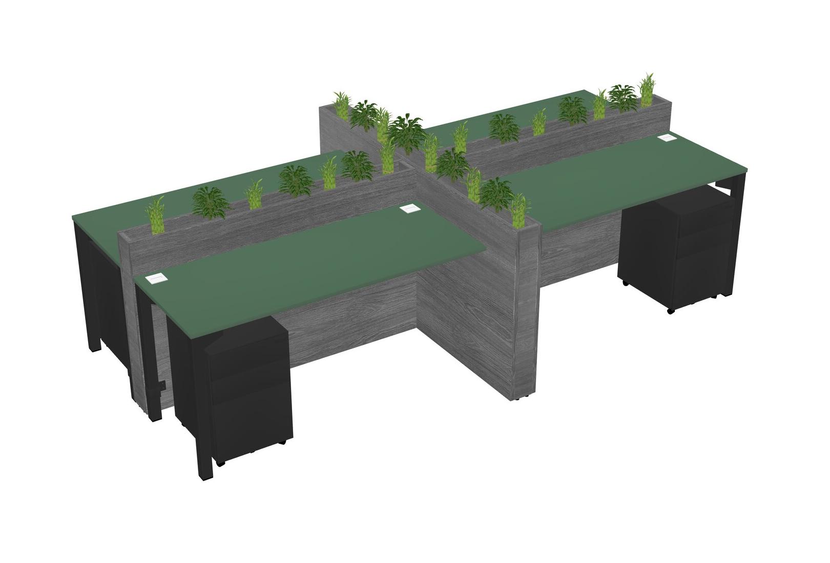 Green Rectangular Shared Office Desk For 4 Persons Let Nature Help Flourish Your Productivity The Base Comes With An Adjustable Shelf To Provide Space For Pots (Pots & Plants Sold Separately)