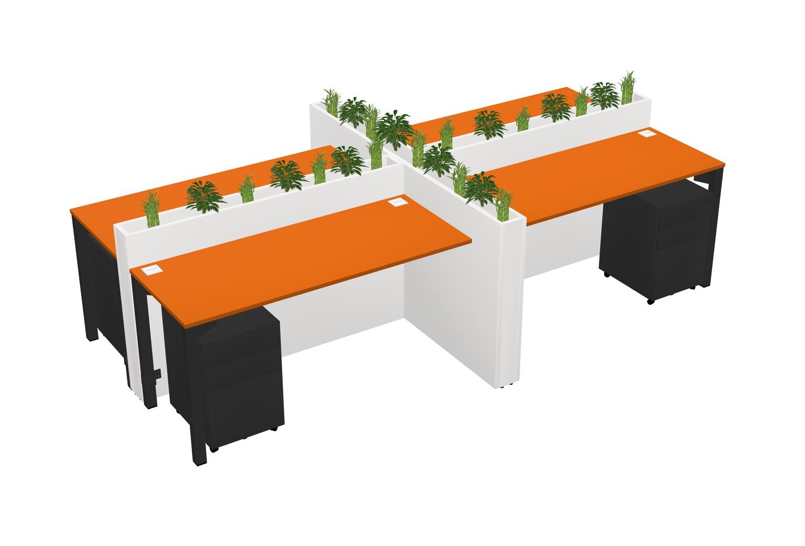 Orange Rectangular Shared Office Desk For 4 Persons Let Nature Help Flourish Your Productivity The Base Comes With An Adjustable Shelf To Provide Space For Pots (Pots & Plants Sold Separately)