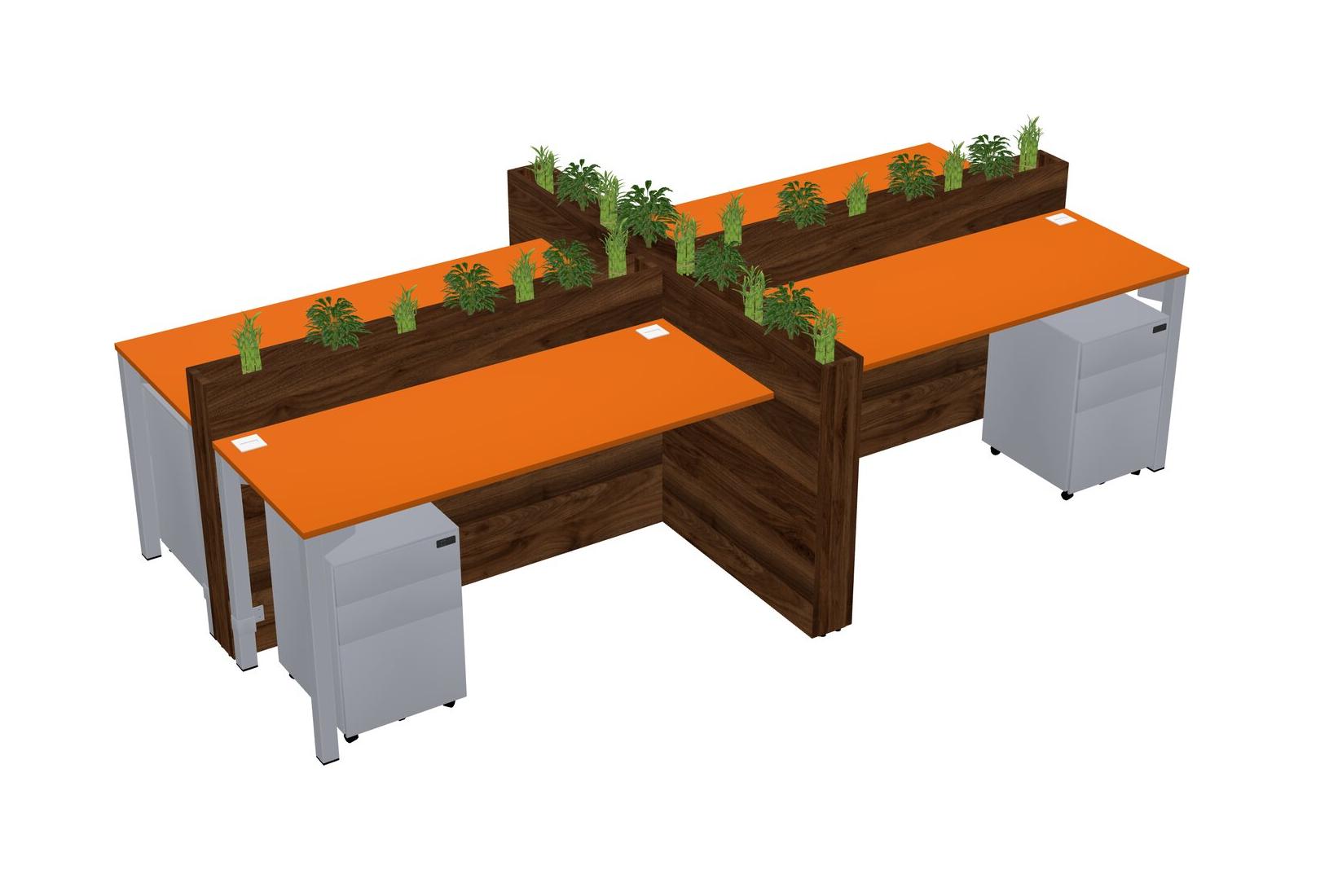 Orange Rectangular Shared Office Desk For 4 Persons Let Nature Help Flourish Your Productivity The Base Comes With An Adjustable Shelf To Provide Space For Pots (Pots & Plants Sold Separately)