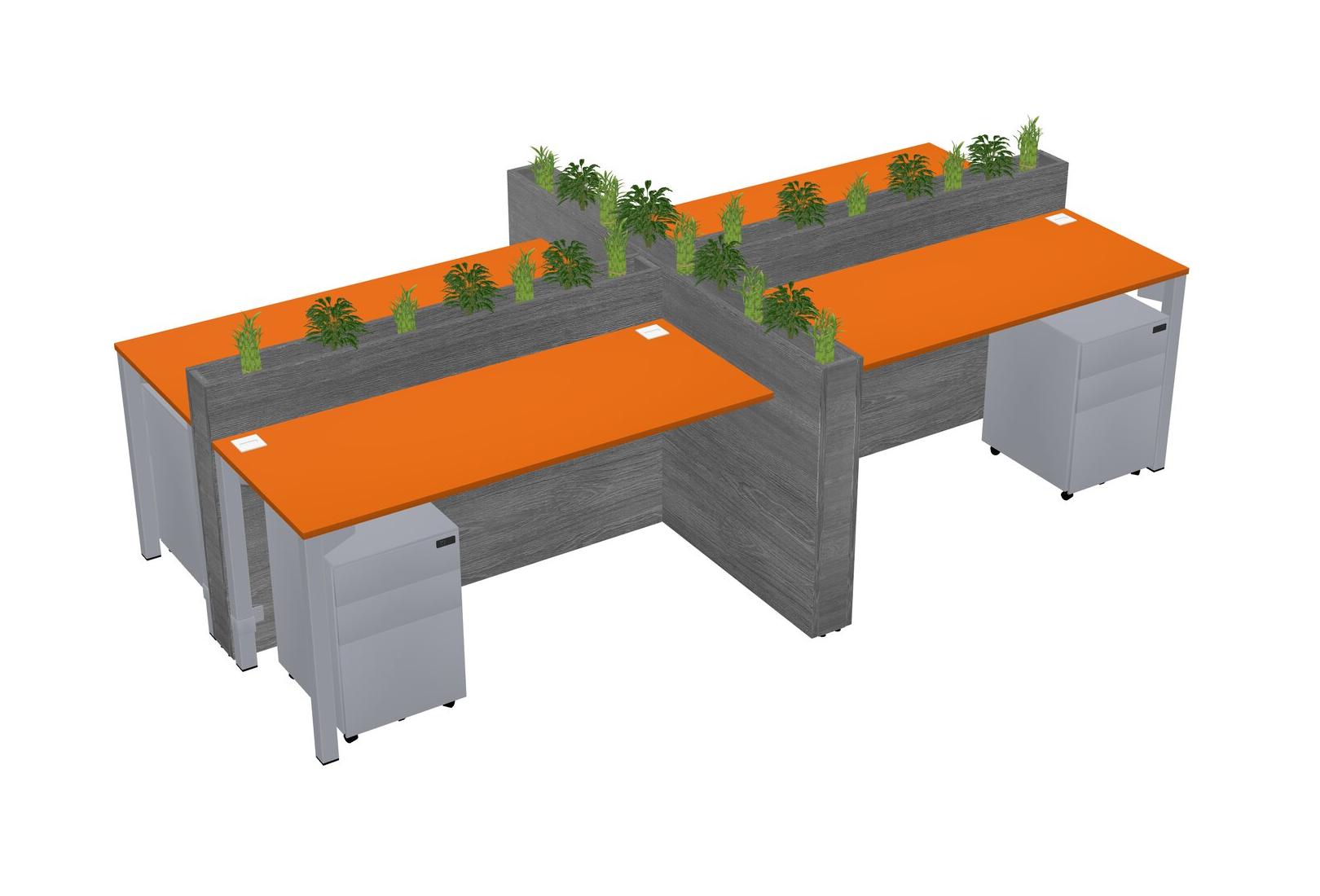 Orange Rectangular Shared Office Desk For 4 Persons Let Nature Help Flourish Your Productivity The Base Comes With An Adjustable Shelf To Provide Space For Pots (Pots & Plants Sold Separately)
