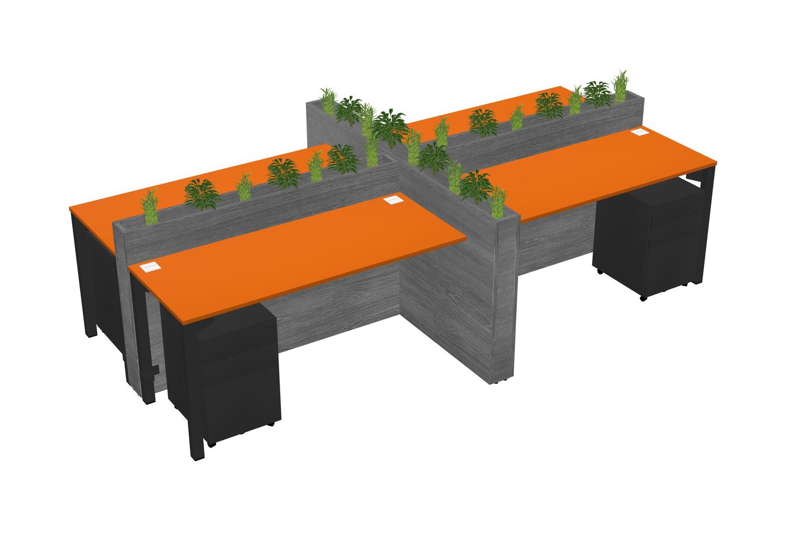 Orange Rectangular Shared Office Desk For 4 Persons Let Nature Help Flourish Your Productivity The Base Comes With An Adjustable Shelf To Provide Space For Pots (Pots & Plants Sold Separately)