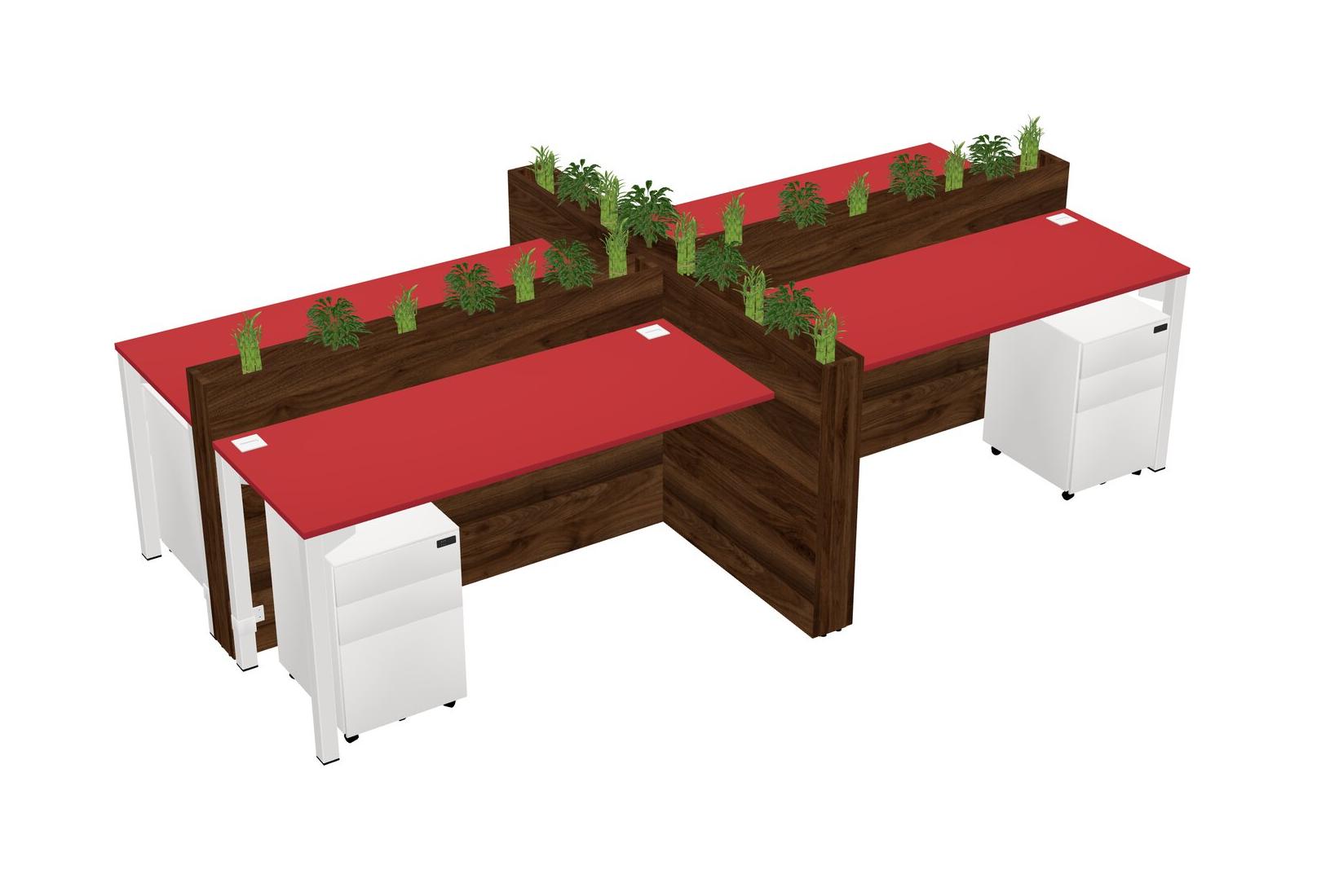 Prism Red Rectangular Shared Office Desk For 4 Persons Let Nature Help Flourish Your Productivity The Base Comes With An Adjustable Shelf To Provide Space For Pots (Pots & Plants Sold Separately)
