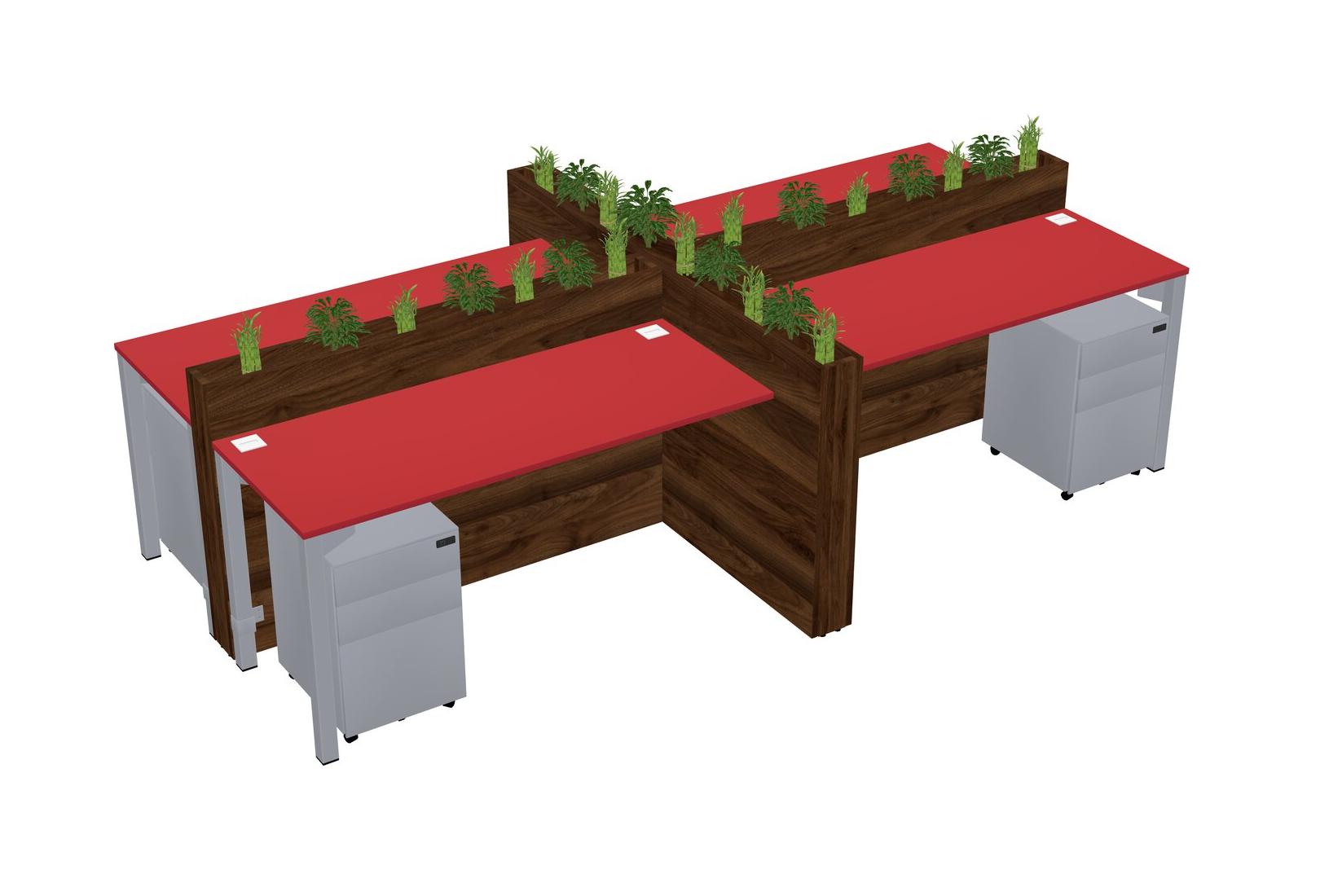 Prism Red Rectangular Shared Office Desk For 4 Persons Let Nature Help Flourish Your Productivity The Base Comes With An Adjustable Shelf To Provide Space For Pots (Pots & Plants Sold Separately)