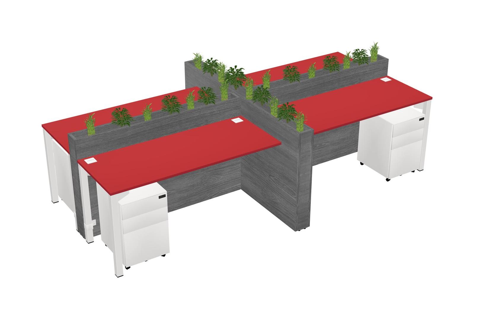 Prism Red Rectangular Shared Office Desk For 4 Persons Let Nature Help Flourish Your Productivity The Base Comes With An Adjustable Shelf To Provide Space For Pots (Pots & Plants Sold Separately)