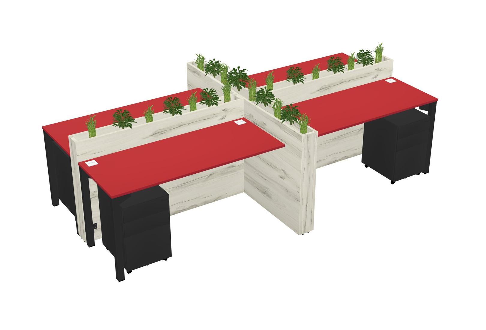 Prism Red Rectangular Shared Office Desk For 4 Persons Let Nature Help Flourish Your Productivity The Base Comes With An Adjustable Shelf To Provide Space For Pots (Pots & Plants Sold Separately)