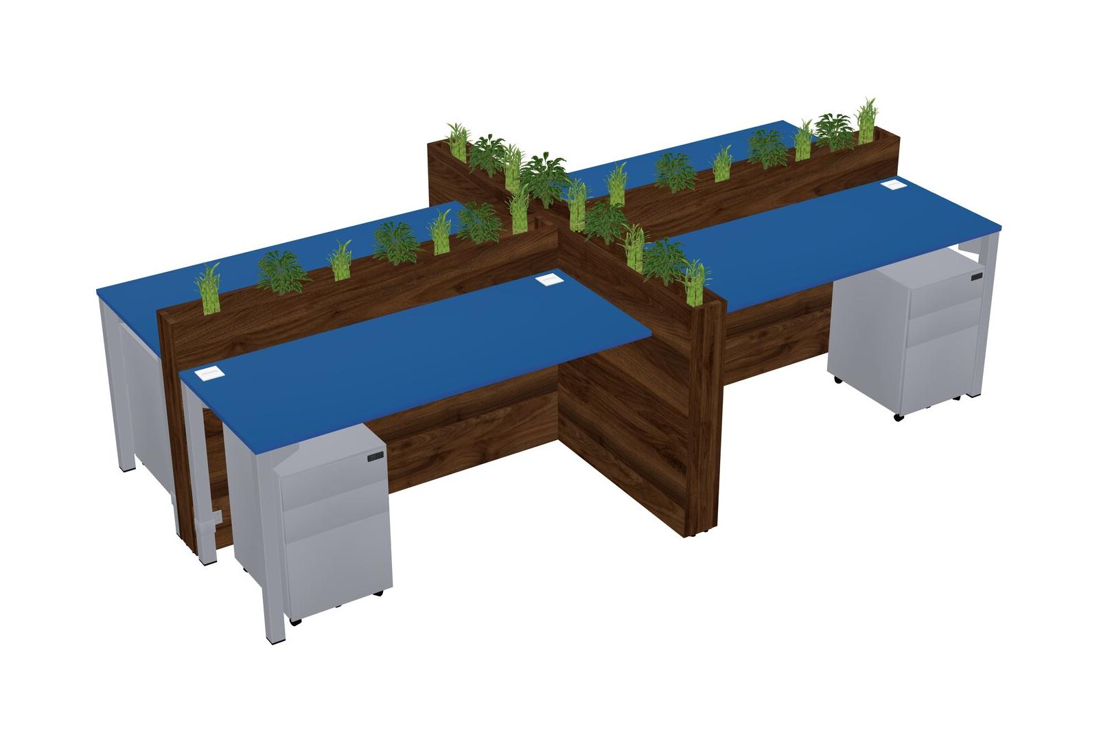 Prism Blue Rectangular Shared Office Desk For 4 Persons Let Nature Help Flourish Your Productivity The Base Comes With An Adjustable Shelf To Provide Space For Pots (Pots & Plants Sold Separately)