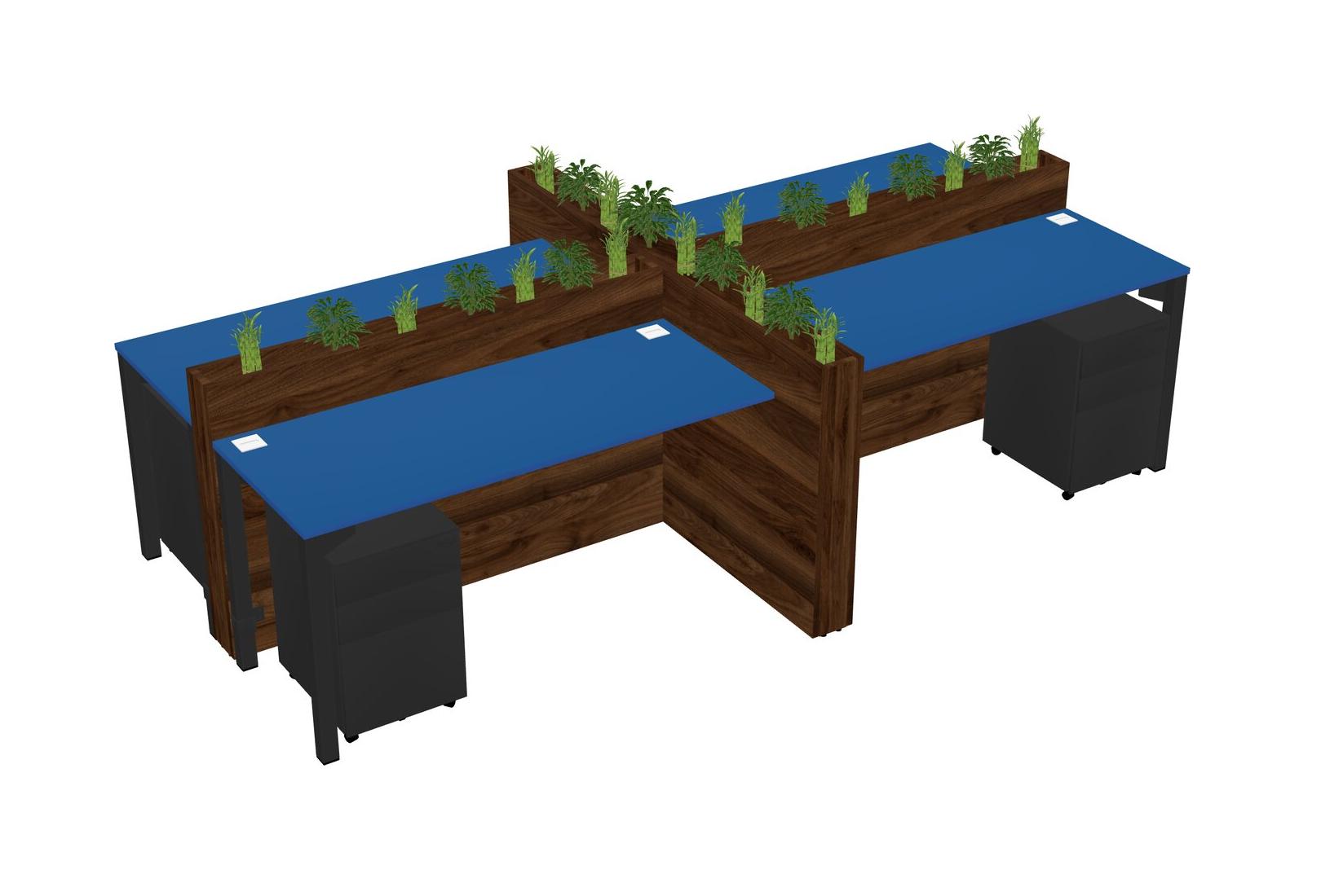 Prism Blue Rectangular Shared Office Desk For 4 Persons Let Nature Help Flourish Your Productivity The Base Comes With An Adjustable Shelf To Provide Space For Pots (Pots & Plants Sold Separately)