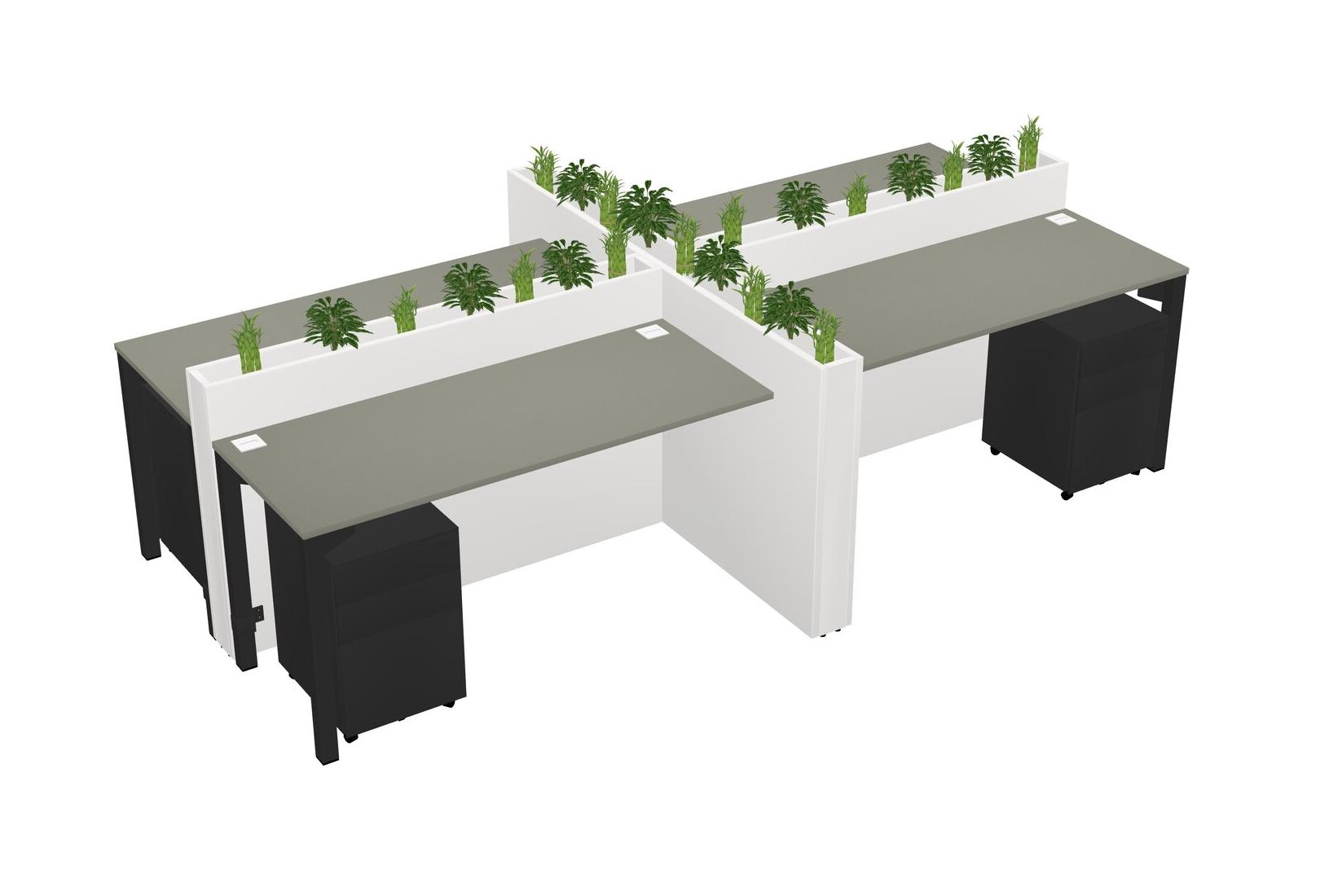 Grey Shadows Rectangular Shared Office Desk For 4 Persons Let Nature Help Flourish Your Productivity The Base Comes With An Adjustable Shelf To Provide Space For Pots (Pots & Plants Sold Separately)
