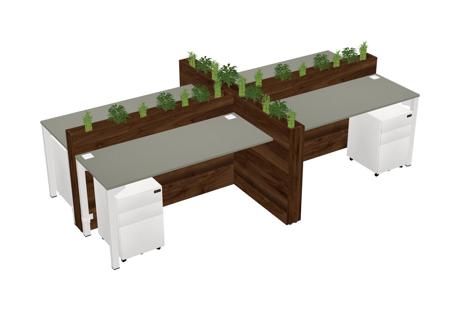 Grey Shadows Rectangular Shared Office Desk For 4 Persons Let Nature Help Flourish Your Productivity The Base Comes With An Adjustable Shelf To Provide Space For Pots (Pots & Plants Sold Separately)