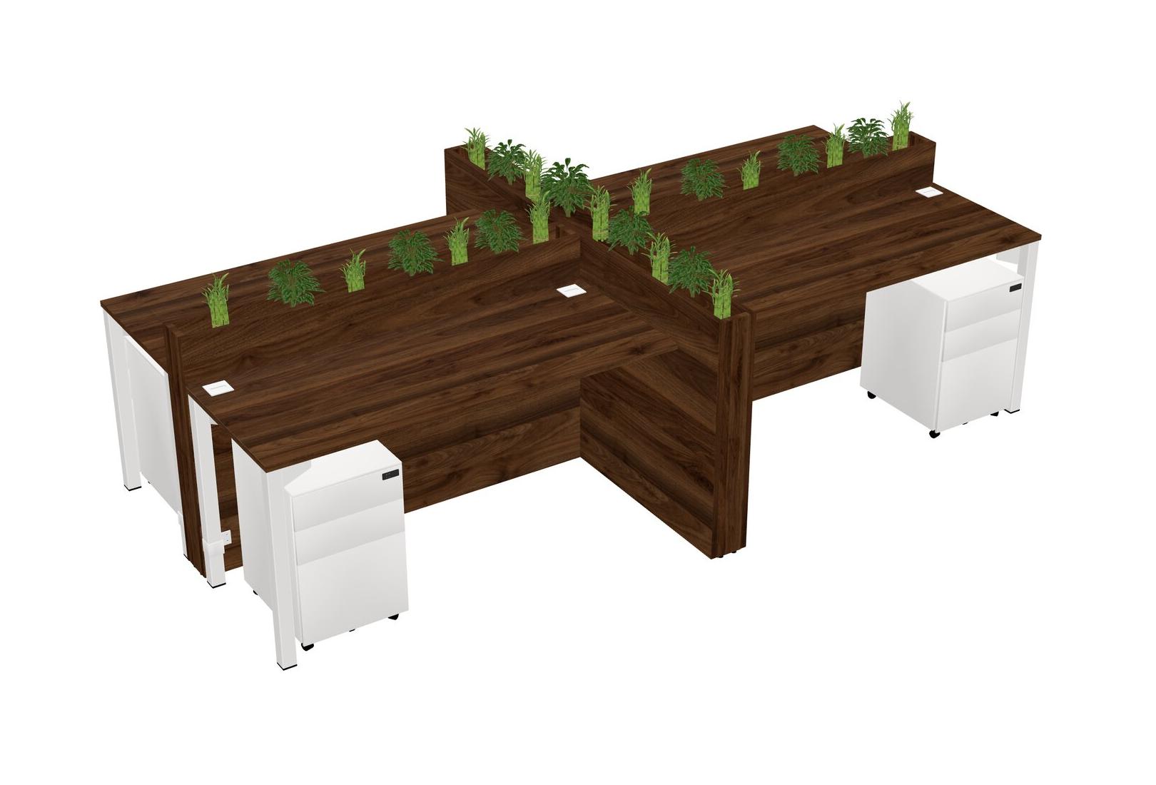 Columbia Walnut Rectangular Shared Office Desk For 4 Persons Let Nature Help Flourish Your Productivity The Base Comes With An Adjustable Shelf To Provide Space For Pots (Pots & Plants Sold Separately)