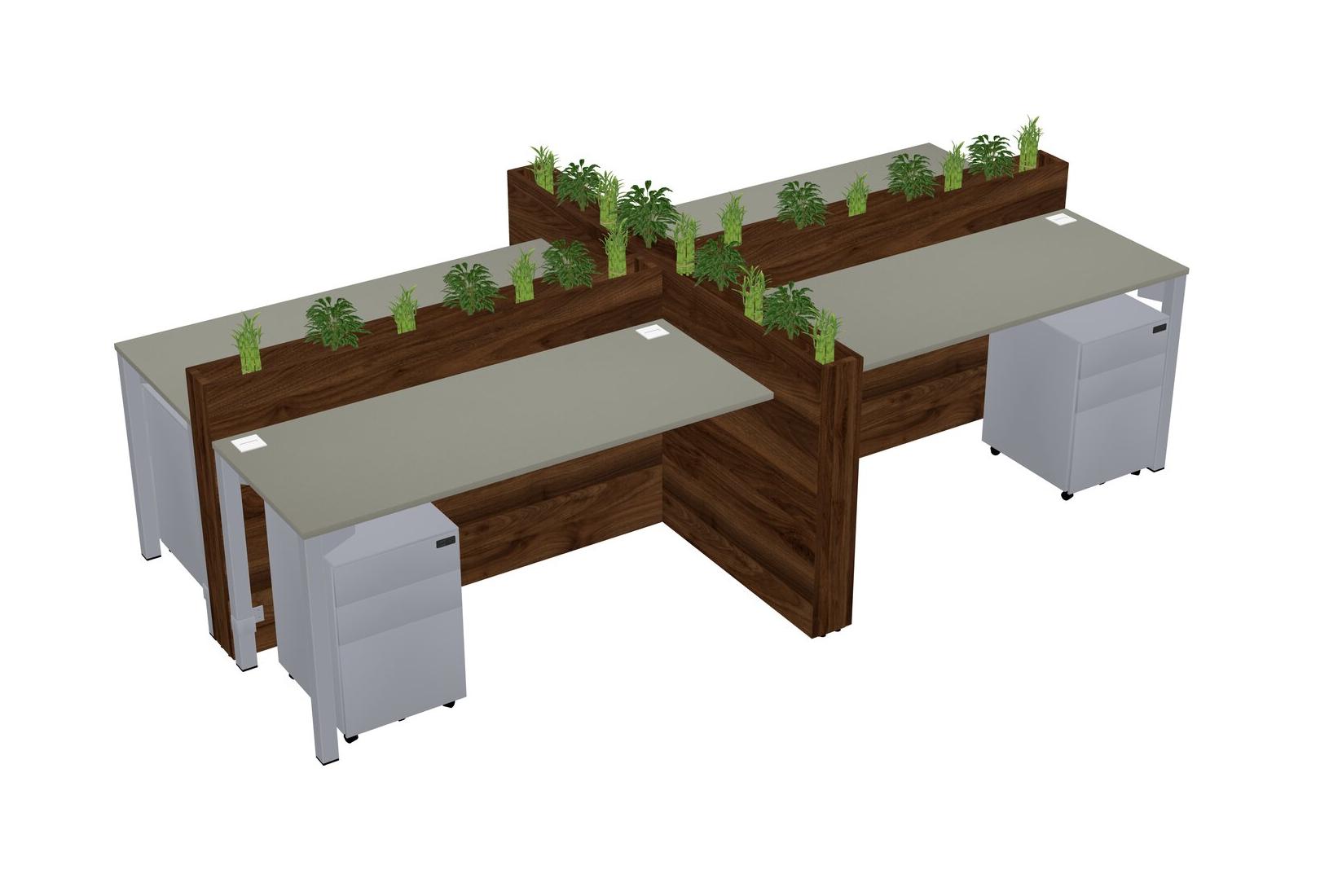 Grey Shadows Rectangular Shared Office Desk For 4 Persons Let Nature Help Flourish Your Productivity The Base Comes With An Adjustable Shelf To Provide Space For Pots (Pots & Plants Sold Separately)