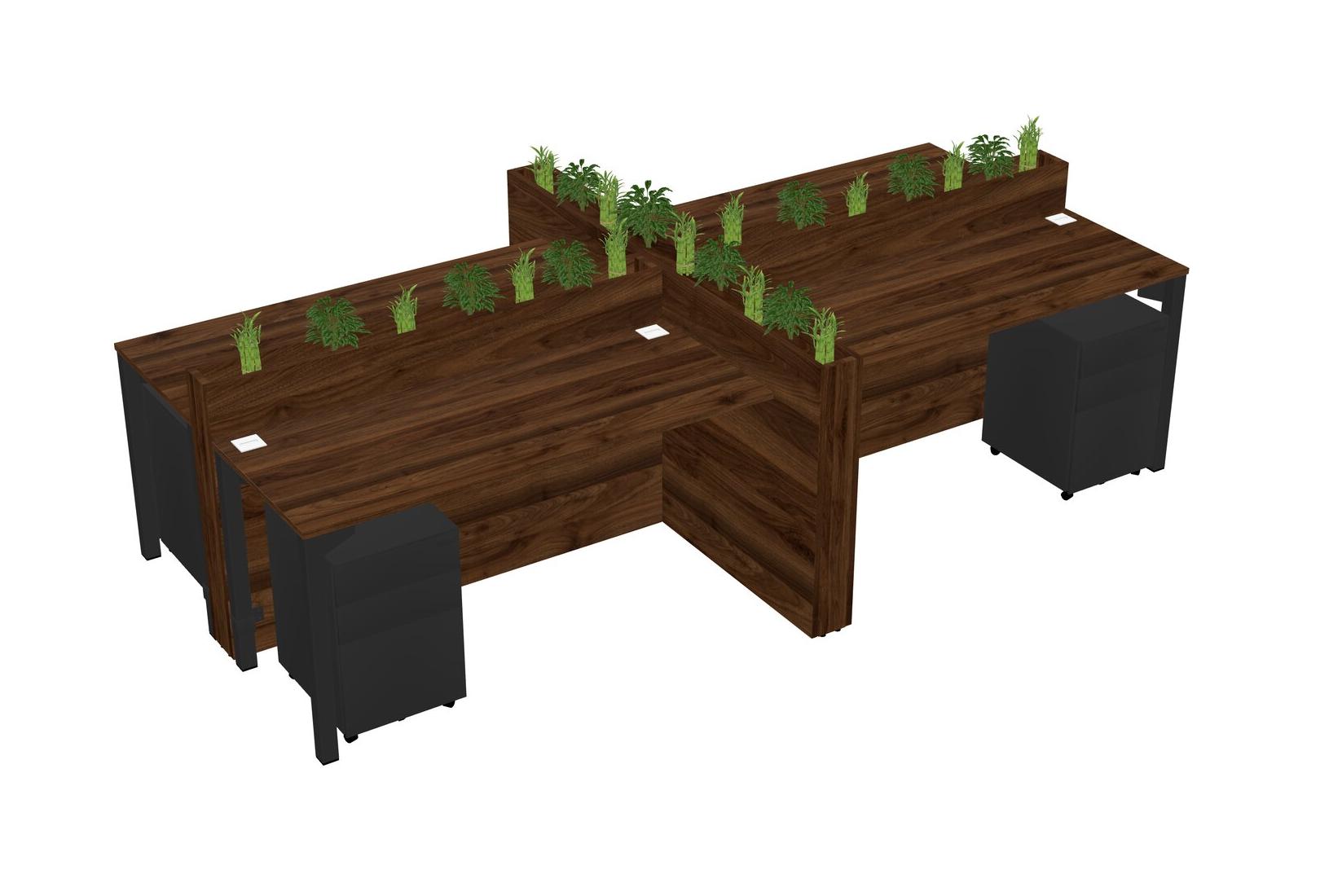 Columbia Walnut Rectangular Shared Office Desk For 4 Persons Let Nature Help Flourish Your Productivity The Base Comes With An Adjustable Shelf To Provide Space For Pots (Pots & Plants Sold Separately)