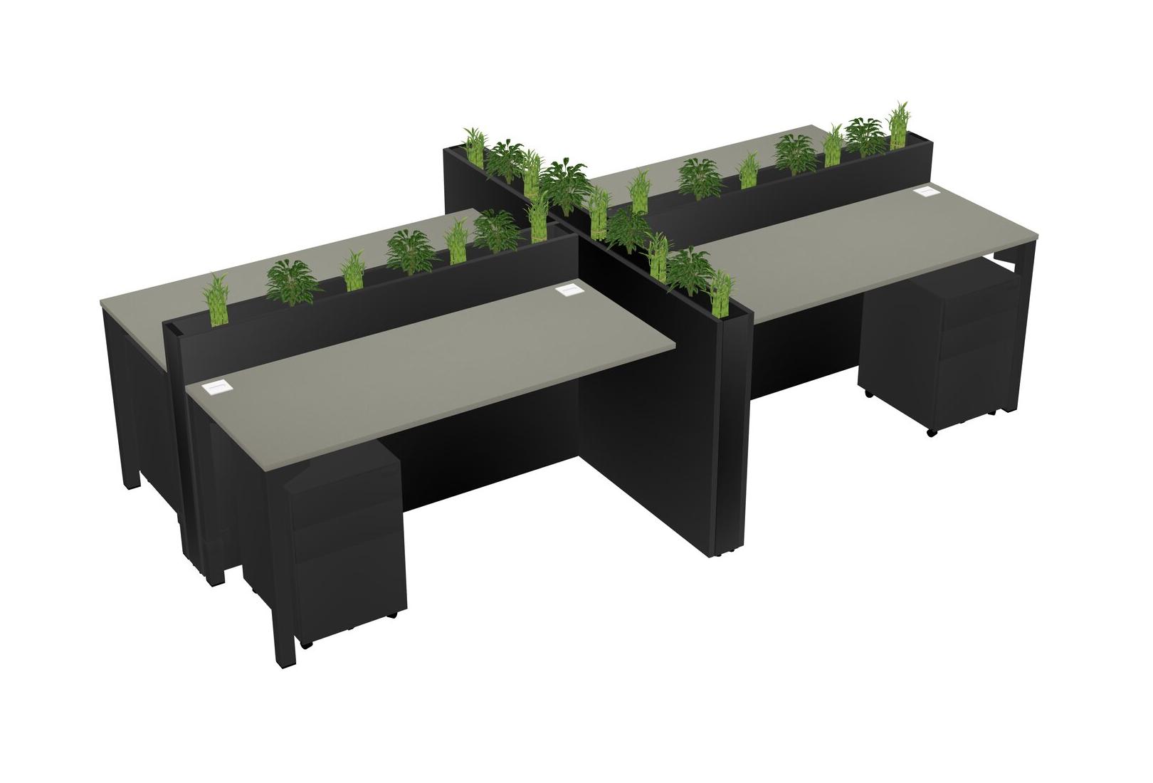 Grey Shadows Rectangular Shared Office Desk For 4 Persons Let Nature Help Flourish Your Productivity The Base Comes With An Adjustable Shelf To Provide Space For Pots (Pots & Plants Sold Separately)