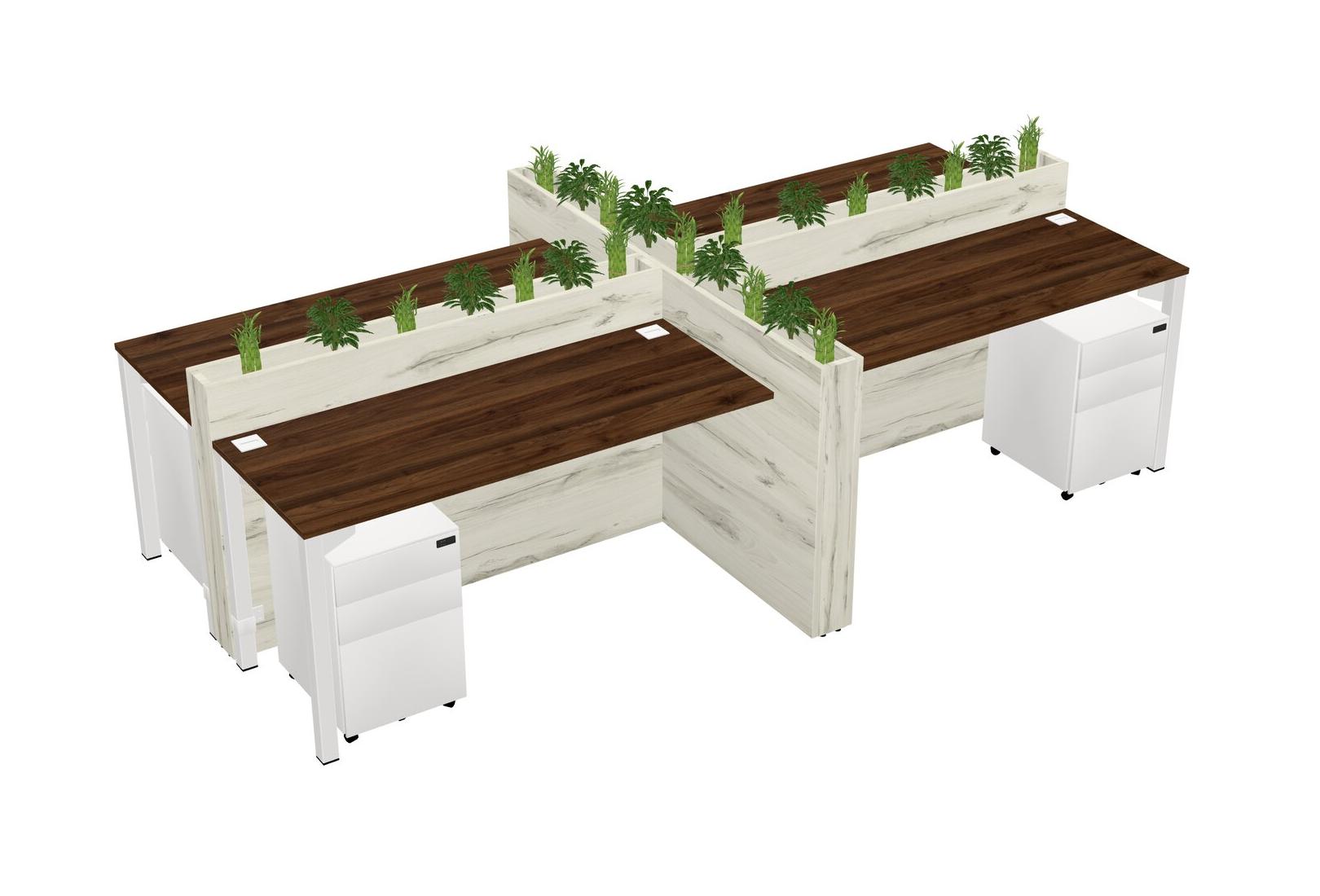 Columbia Walnut Rectangular Shared Office Desk For 4 Persons Let Nature Help Flourish Your Productivity The Base Comes With An Adjustable Shelf To Provide Space For Pots (Pots & Plants Sold Separately)