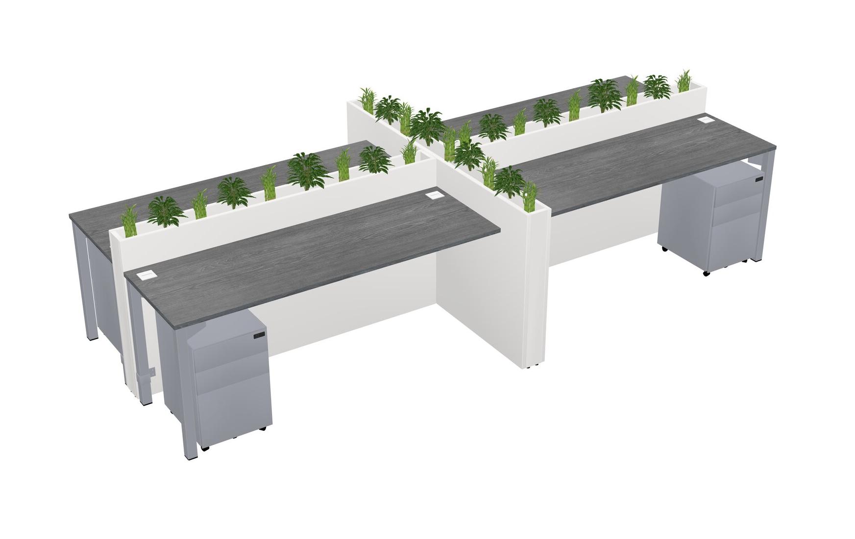 Grey Rectangular Shared Office Desk For 4 Persons Let Nature Help Flourish Your Productivity The Base Comes With An Adjustable Shelf To Provide Space For Pots (Pots & Plants Sold Separately)