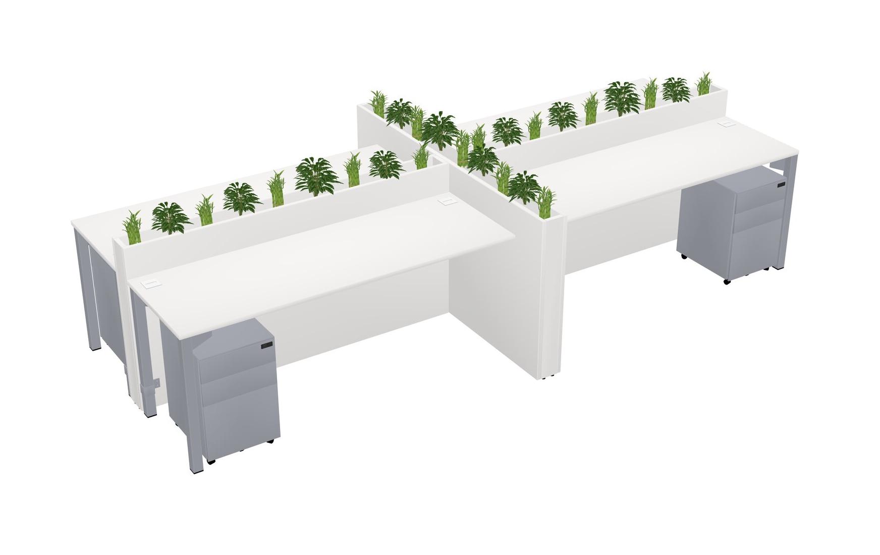 White Rectangular Shared Office Desk For 4 Persons Let Nature Help Flourish Your Productivity The Base Comes With An Adjustable Shelf To Provide Space For Pots (Pots & Plants Sold Separately)
