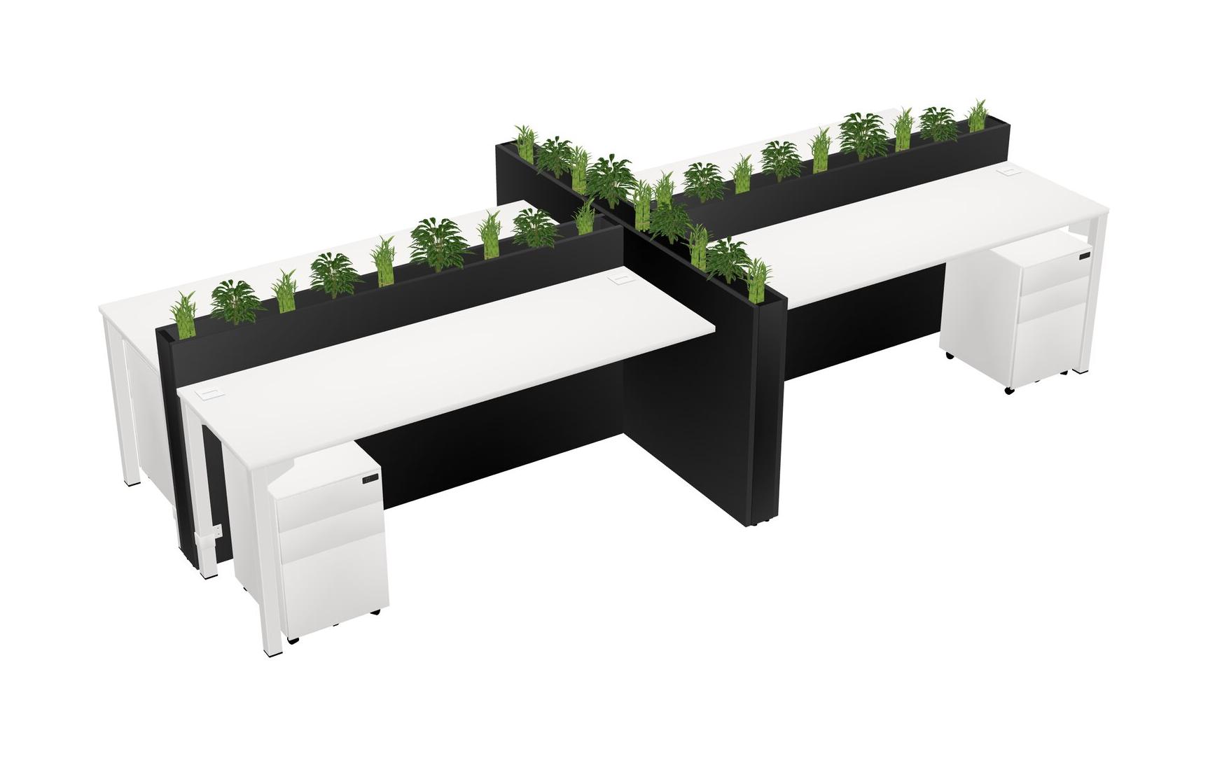 White Rectangular Shared Office Desk For 4 Persons Let Nature Help Flourish Your Productivity The Base Comes With An Adjustable Shelf To Provide Space For Pots (Pots & Plants Sold Separately)